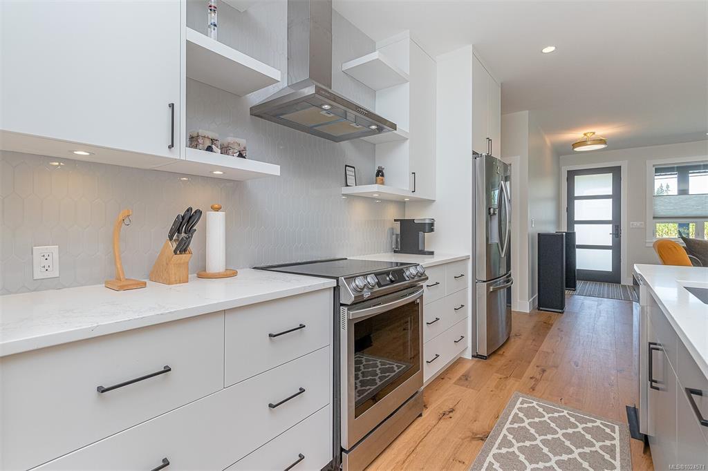 Built in 2021, this 3 bed, 2 bath 1,718 sq. ft. rancher sits on a private 0.42-acre lot and includes a double garage plus a 500 sq. ft. detached garage/workshop. Like new and still under New Home Warranty, this home is built to Step 5 Code with an EnerGuide rating of 48. Features include 9’ ceilings, heat pump, 42” fireplace, quartz counters, built-in TV cabinet, motorized blinds, glue-down hardwood floors, and 8’ 3-point locking doors. The primary suite boasts a 5-piece ensuite and walk-in closet. Wired for a hot tub, with new appliances, pressurized septic, ColorPlus HardiePlank siding, and loads of parking including RV space. Located in one of Central Vancouver Island’s most desirable communities. A rare find—don’t miss out!