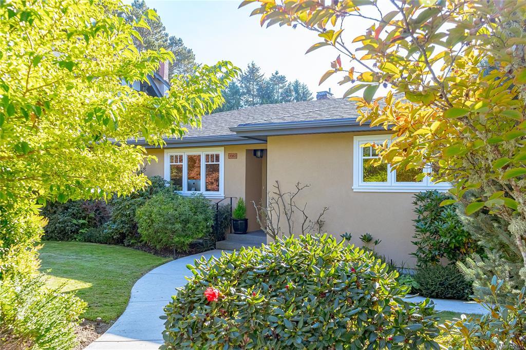A rare find – South Oak Bay! Nestled on beloved Newport Avenue, this enchanting 3 bed/2 bath rancher offers a rare blend of timeless elegance & modern comfort.Thoughtfully designed & exquisitely renovated, the sunlit living spaces invite warmth, peace, & a true sense of home. Glistening original fir floors, curated built-ins, & underfloor hot water heating speak to quality and care. The heart of the home flows effortlessly from the welcoming entry to the entertainment-sized living/dining rooms & a kitchen made for joyful gatherings. Step outside into your own private English garden oasis-complete with west-facing patios, a 17th-century fountain, and the serenity of mature landscaping. A double garage with loft storage is accessed via a quiet lane. Just a short stroll to Victoria Golf Club, Windsor Park, the marina, Oak Bay Village, & charming local cafés. Perfectly sized for empty nesters, professionals, or those seeking beauty & simplicity in one of Oak Bay’s most treasured locations.