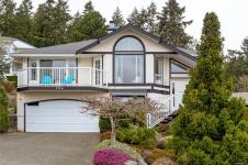 Arbutus Ridge at its Best! Split level home of 2658Sq. Ft .Ocean and Mountain views of Lands End, Saltspring, Satellite Channel and Mt. Baker. Vaulted entry leads up to gorgeous Main with views from every room. Warmed by fireplace the LR features massive arched window capturing incredible vistas. Balcony captures open air magic. Semi-formal DR bounds over- sized Island Kitchen with adjacent informal eating/sitting/tv room. Glassed All Season Sunroom brings outdoors in! Primary BR suite celebrates sunrise through patio door leading to sun bathed deck. Lovely guest BR and 4 pc bath completes the Main. Lower level of 966 sq. ft. provides a charming office/library/sitting room with full ocean vistas. Additional BR,3 pc bath and storage rooms provide utility and flex. Short stroll down to the Common waterfront. Golf/Tennis/Clubhouse/Pool/Library/Restaurant/Pub/24 hr. Security. Resort Style 55+ Gated Community Living at its Finest. Vancouver Island at its Best!