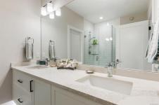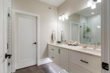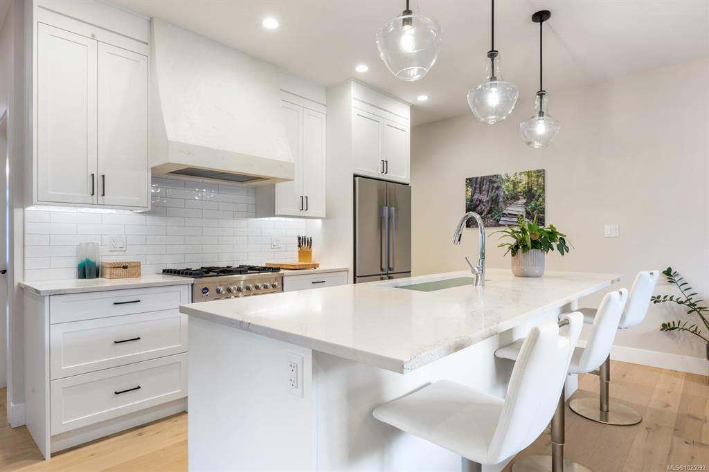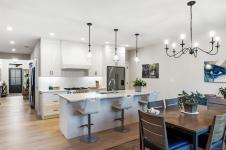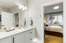 This gorgeous patio home perfectly balances farmhouse charm with modern elegance. Thoughtfully designed and beautifully finished, it offers both style and comfort at every turn. Step inside to an open-concept main floor where natural light fills the space. The custom fireplace with gas insert creates a cozy focal point, while upgraded lighting adds an extra touch of sophistication. The kitchen is a dream, complete with custom cabinetry, a walk-in pantry, tiled backsplash, and a gas stove. The primary suite feels like a private retreat, featuring a spacious ensuite with heated floors, under-cabinet lighting, and a beautifully tiled shower. The living room’s coffered ceiling adds to the home’s timeless character and warmth. This home offers exceptional energy efficiency with a heat pump and HRV system, delivering comfort that’s both cost-effective and environmentally friendly. A rare blend of design, sustainability, and easy living, this is a home that truly stands out.