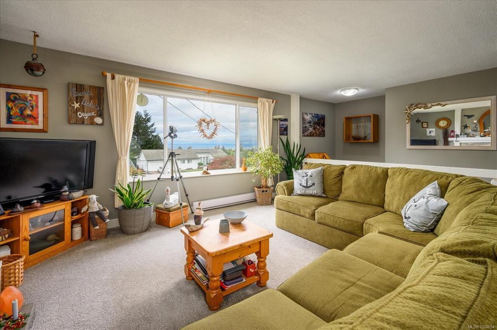 Fabulous OCEAN VIEW home located in desirable Upper Lantzville only a five minute drive to north Nanaimo and Woodgrove Mall with easy access to the highway. This gorgeous four bedroom and three bathroom ocean view home is located on a large almost 1/3 of an acre lot with a sunny, south facing level rear yard. PLUS there is a fully separate suite on the lower level with one bedroom, bathroom, fully fitted kitchen and living room, all with it's own private access. Great multi-general living or income generating potential. The upper floor comprises an L-shaped open concept living area with a living room, dining room and kitchen. The living room is large with a grand picture windows over-looking the Salish Sea and the coastal mountain ranges beyond. Sit and watch the cruise ships go by. The living room has a cozy wood burning fireplace. The European kitchen has been lovingly updated. There is a 14' x12' deck off the the eating area. The principle bedroom has an ensuite.