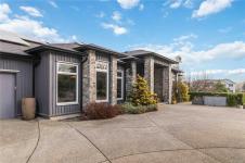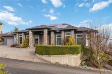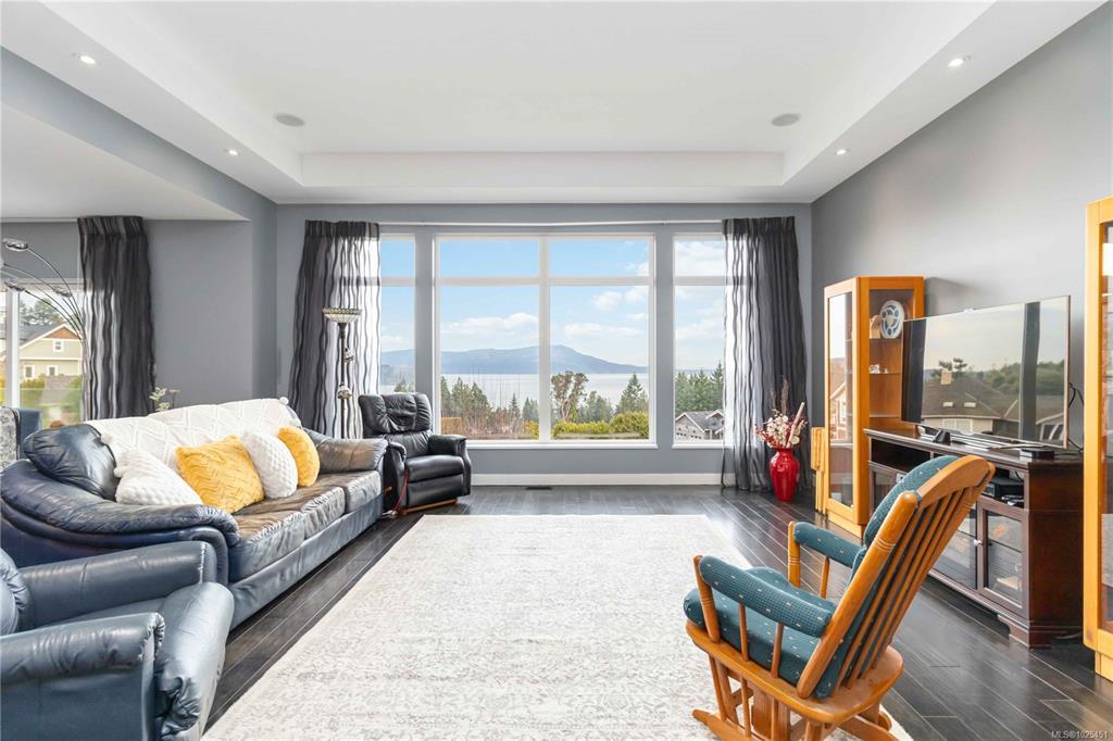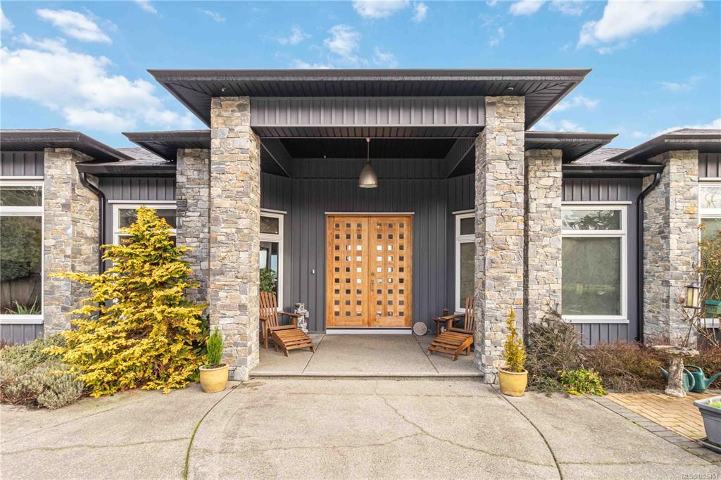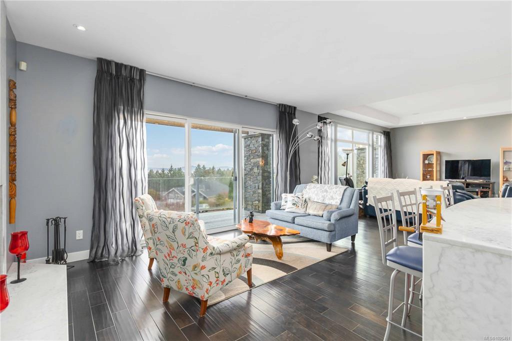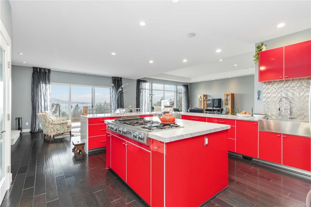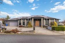 This beautifully crafted custom home in Sentinel Ridge in Mill Bay showcases expansive ocean and island views stretching across Saanich Inlet to Salt Spring Island. Designed with entertaining in mind, the residence offers bright, open interiors and generous living areas ideal for hosting. The standout kitchen features premium appliances, distinctive red cabinetry, dual pantries, and marble countertops, creating a natural gathering space. Architectural highlights include the illusion floor, custom steel railing, and lucite staircase, leading to a lower-level recreation and media room with sliding wall panels for adaptable use. Recent upgrades include a rooftop solar system, two new heat pumps, and air exchangers for enhanced energy efficiency. A triple garage, RV parking, and a fully fenced, landscaped yard with irrigation complete this exceptional property. A rare offering that combines thoughtful design, quality craftsmanship, and an inviting atmosphere for entertaining.