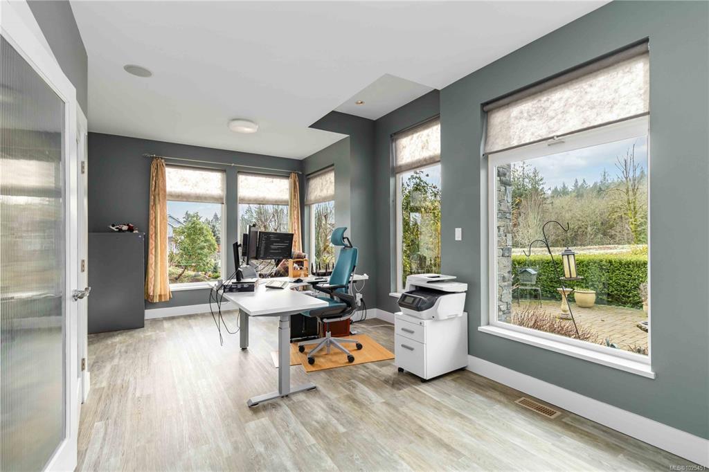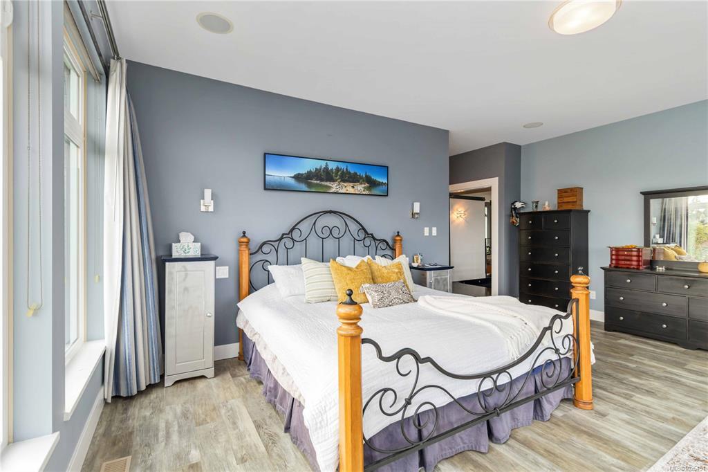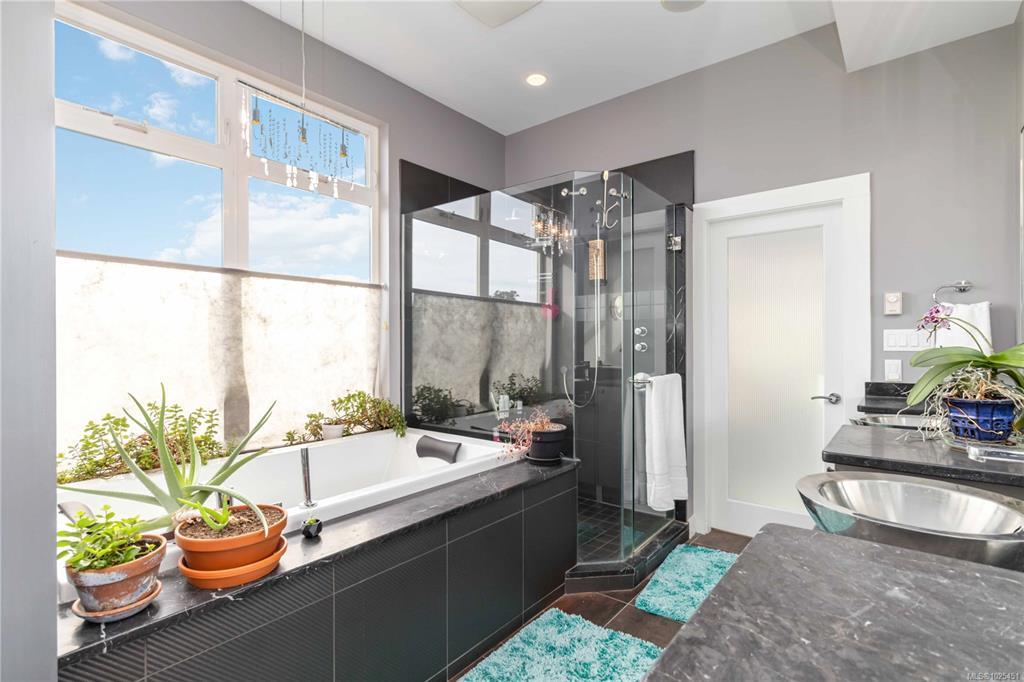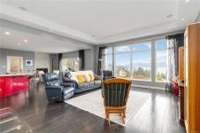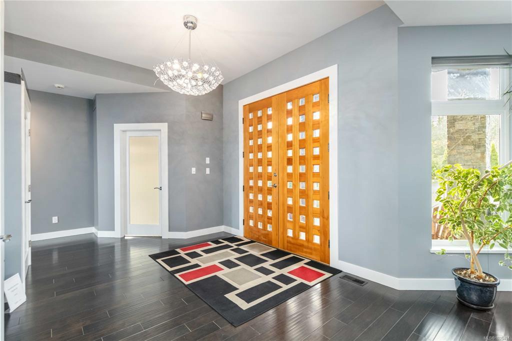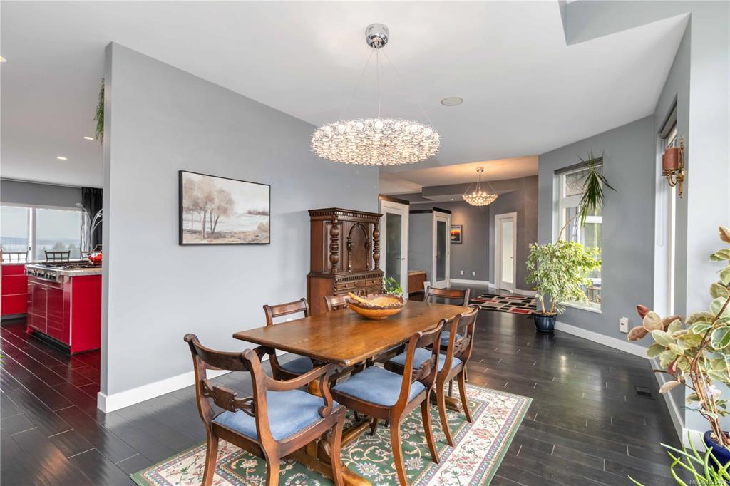 This beautifully crafted custom home in Sentinel Ridge in Mill Bay showcases expansive ocean and island views stretching across Saanich Inlet to Salt Spring Island. Designed with entertaining in mind, the residence offers bright, open interiors and generous living areas ideal for hosting. The standout kitchen features premium appliances, distinctive red cabinetry, dual pantries, and marble countertops, creating a natural gathering space. Architectural highlights include the illusion floor, custom steel railing, and lucite staircase, leading to a lower-level recreation and media room with sliding wall panels for adaptable use. Recent upgrades include a rooftop solar system, two new heat pumps, and air exchangers for enhanced energy efficiency. A triple garage, RV parking, and a fully fenced, landscaped yard with irrigation complete this exceptional property. A rare offering that combines thoughtful design, quality craftsmanship, and an inviting atmosphere for entertaining.