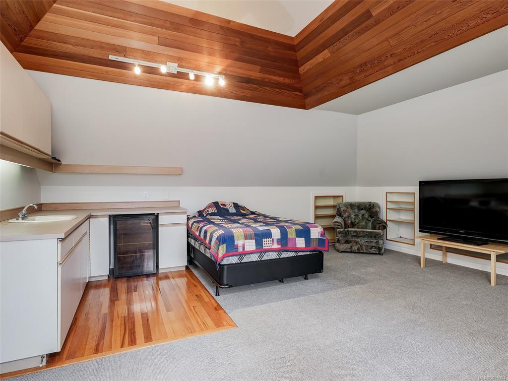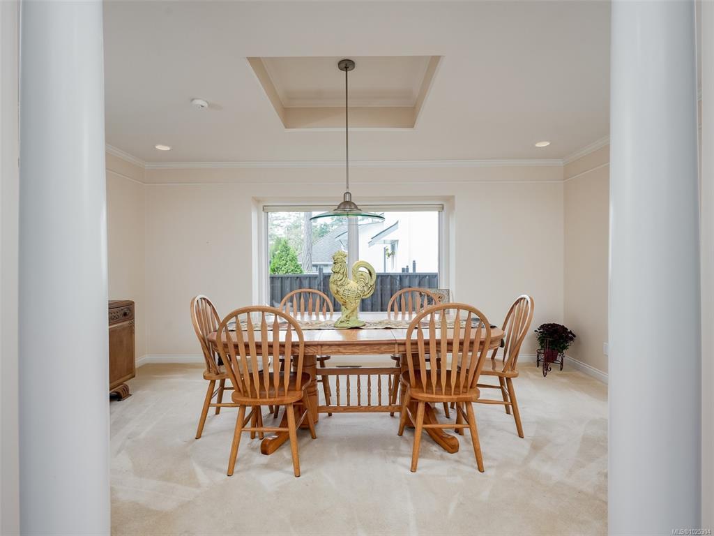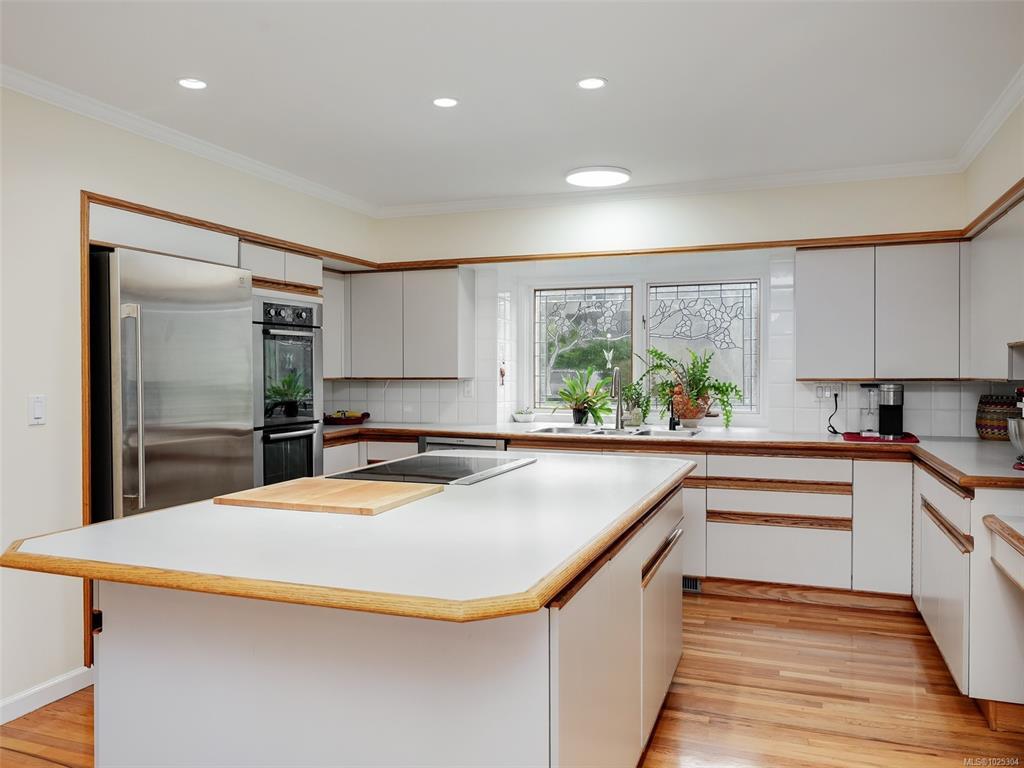 WEDGEWOOD POINT EXECUTIVE HOME IN TEN MILE POINT. Well appointed spacious 4 bedroom, 4 bathroom family home has many features including leaded glass entry, fresh paint, oak wainscoting & gleaming oak floors throughout the main living areas will appease the discerning buyer. Entertain in the over-sized living room with natural gas f/p & separate dining room. Kitchen is equipped with newer appliances, lighting, huge island, eating area & access to back deck for easy BBQ's. Laundry room, 3 baths, a den & 3 generously sized bedrooms, including the primary bedroom complete this level. Primary bed features an updated walk-in closet & spa-like 4pce ensuite. Upstairs you'll find new carpet, a family room with wet bar & could easily be a Nanny suite or host students, media/rec room, 4-piece bath & 4th bed. Upgrades include gas furnace with AC, heat pump, landscaping, metal fence, hot water tank, remote blinds & more! Walk to Cadboro Bay Village and local beaches, close to UVIC & walking trails.