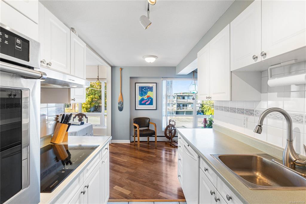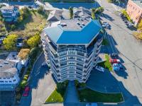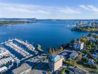 Welcome to the Royal Vista, an oceanside 55+ building in the charming Brechin Hill neighbourhood in Nanaimo. This beautifully maintained 2-bedroom, 1-bathroom condo boasts 1100sqft of living space with Brazilian cherry flooring throughout the main living area, stainless steel fridge and stove in the kitchen, a spacious dining area to entertain your guests, and a second bedroom complete with a Murphy bed to host any overnight visitors. Natural light fills the home through the large windows which also allow you to take in the stunning panoramic views of the ocean, marina, and nearby Protection and Newcastle Islands. Watch the boats and seaplanes come and go from your covered deck or access the Nanaimo Harbourfront Walkway which is just steps from the building's entrance. Close to beaches, trails, cafes, and local shops, this building offers a peaceful, community-oriented lifestyle in one of Nanaimo’s most desirable waterfront locations