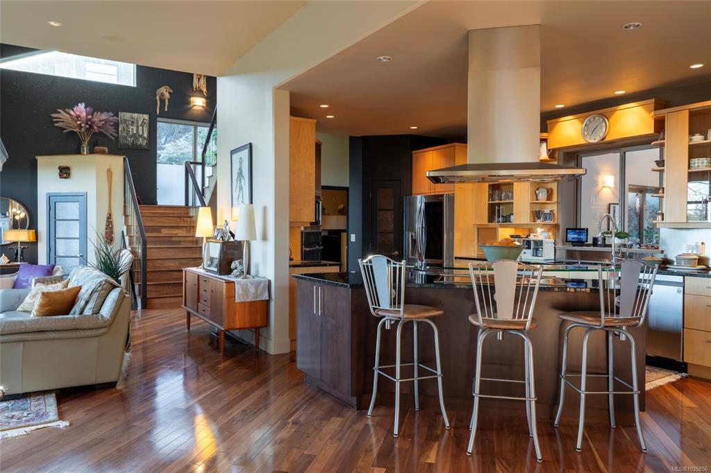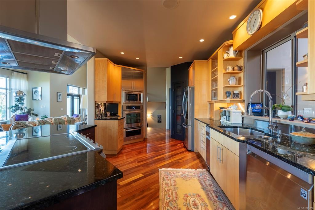 Welcome to 3354 Haida Dr on Triangle Mountain. This custom 4,400+ sqft, 5 bedroom, 4 bath home has beautiful south facing ocean and mountain views that are respected from all focal points of the home. Constructed with ICF from the ground floor to the ceiling, this unique floor plan is immediately welcoming with its 20ft high ceiling entry into an open floor plan kitchen/living/dining and finished off with a spectacular adjoining sunroom. The second tier up to the top floor has an expansive patio to be utilized as is or expand to add another bedroom with ensuite. The upper lvl, features add'l family or sitting room, with primary, walk-in closet, ensuite and private south facing balcony. The lower lvl contain a well kept 2 bedroom suite, second bdrm, and easily convertible work space to add'l bedroom if needed. This 2006 custom build was awarded the Gold CARE Award for Best Custom Home over 4.500sqft & is a must see property with very low maint., tranquil rocky back yard and so much more