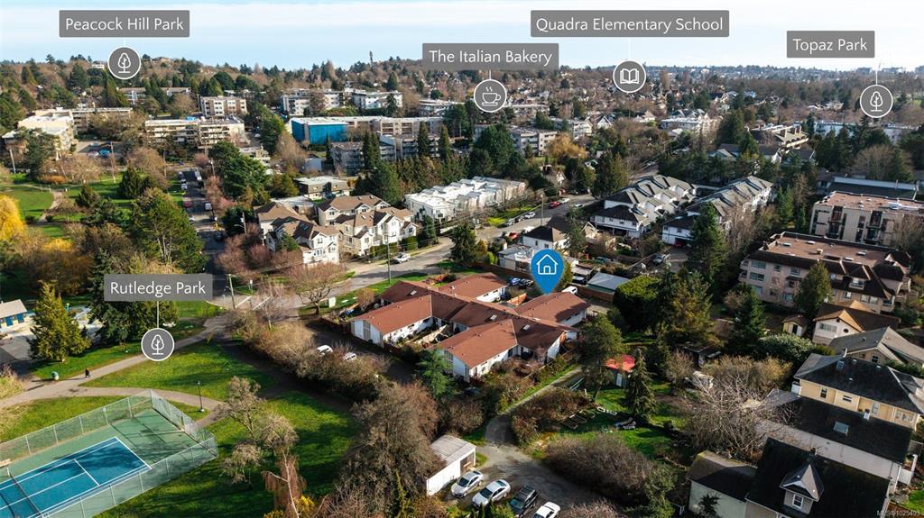 Open House Saturday February 14th 11:00 - 1:00 This is a rare opportunity to own a 3-bedroom rancher townhome with a large private yard and TWO parking spaces in a highly central location. Tucked away on the quiet back corner of the complex, this home offers exceptional privacy. Location is key, and this one delivers—three popular grocery stores are just minutes away, with Uptown and Mayfair Shopping Centers conveniently located on either side. The newly refreshed Rutledge Playground and waterpark are right next door, and the Galloping Goose Trail is only a five-minute bike ride away, making commuting easy. This home must be seen to be fully appreciated. Come by the next open house and say hello! Check out the property feature sheet link to see the property website showcasing TWO videos with more details on the area and property.
