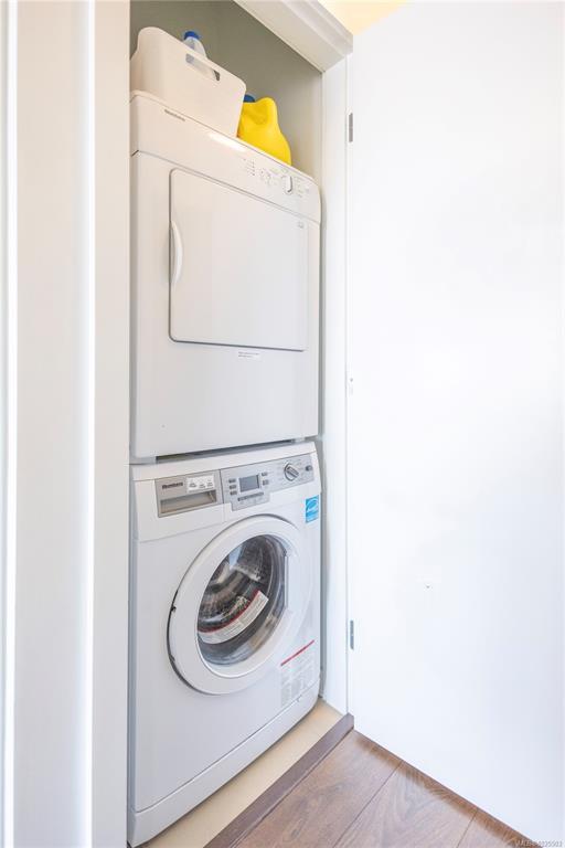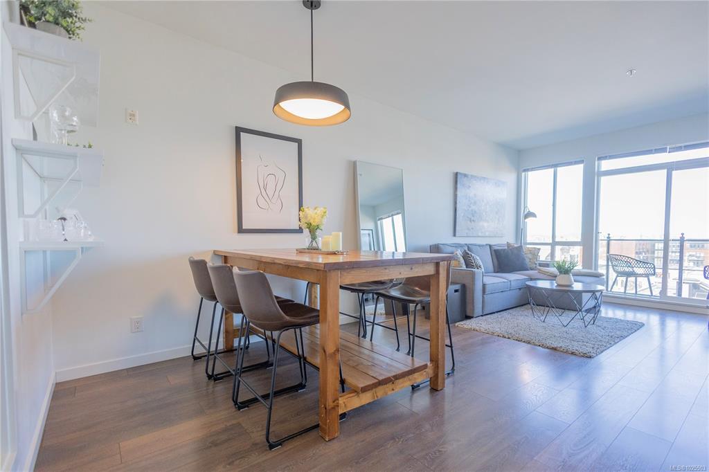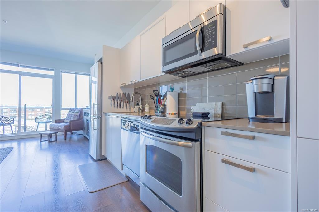Top floor condo in the Union Building! This unit features unobstructed views of the city, mountains, and Victoria's Inner harbour, all from your private balcony. 9ft ceilings, with floor to ceiling north-facing windows bring in tons of natural light while not overheating the space. Quartz countertops, stainless steel appliances, and in-suite laundry are just a few of the perks of this 2014-build. Bring your furry family members! The building is pet-friendly with no size or number limits. Parking? Yes! One parking stall in the secure underground parking and storage locker included. BBQ's allowed. A great opportunity to own a clean, bright, modern & pet friendly home in one of Victoria’s most walkable neighborhoods!