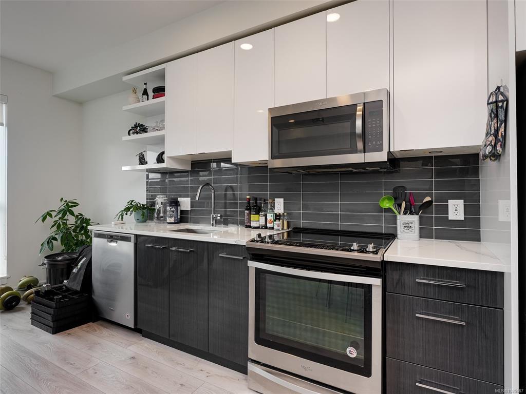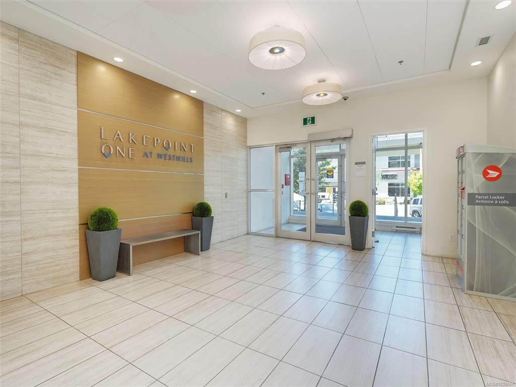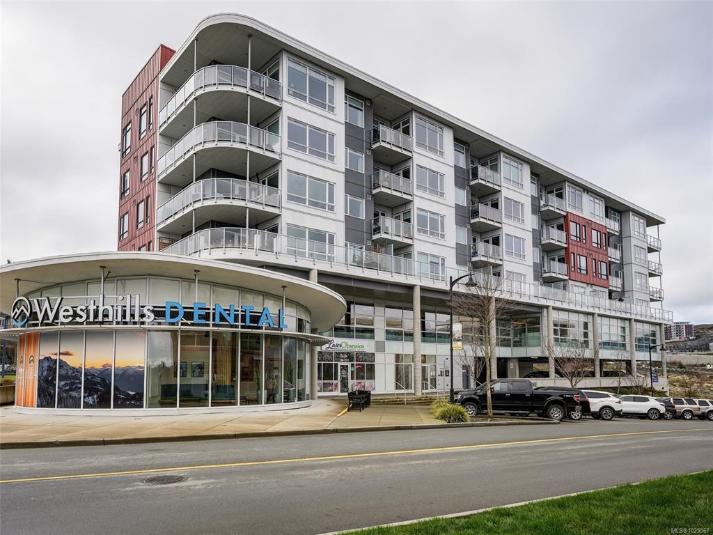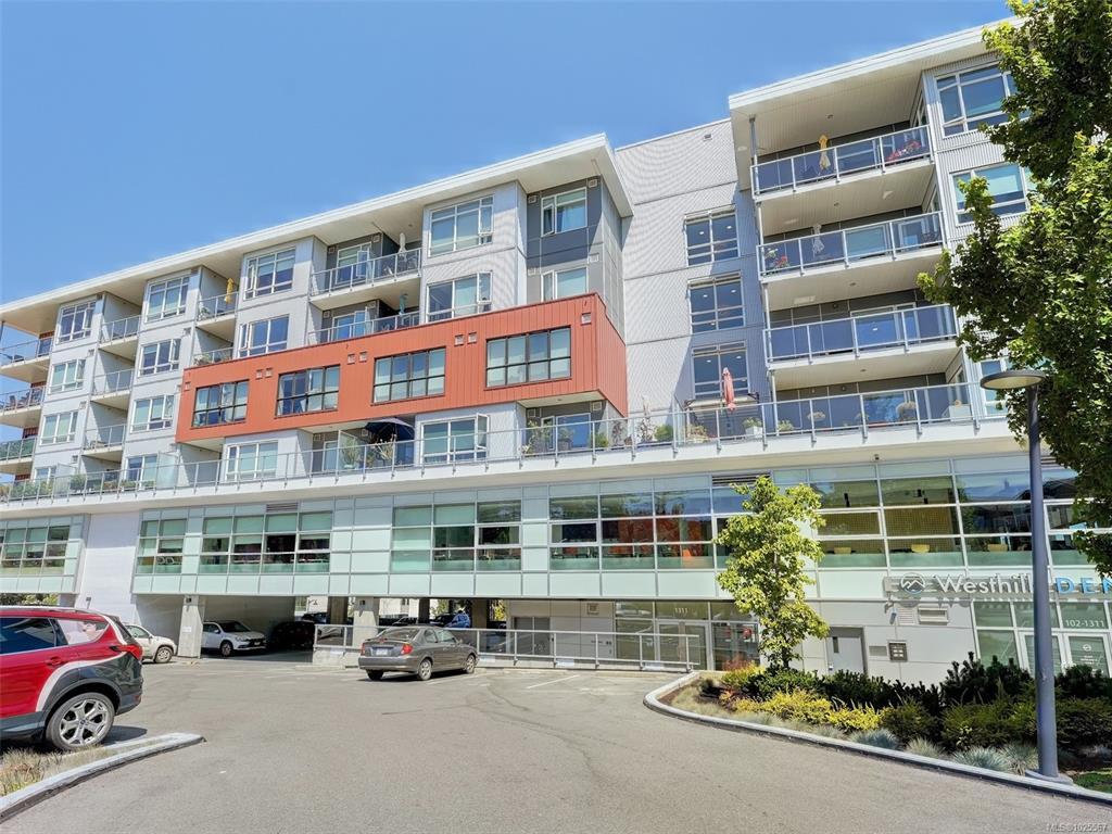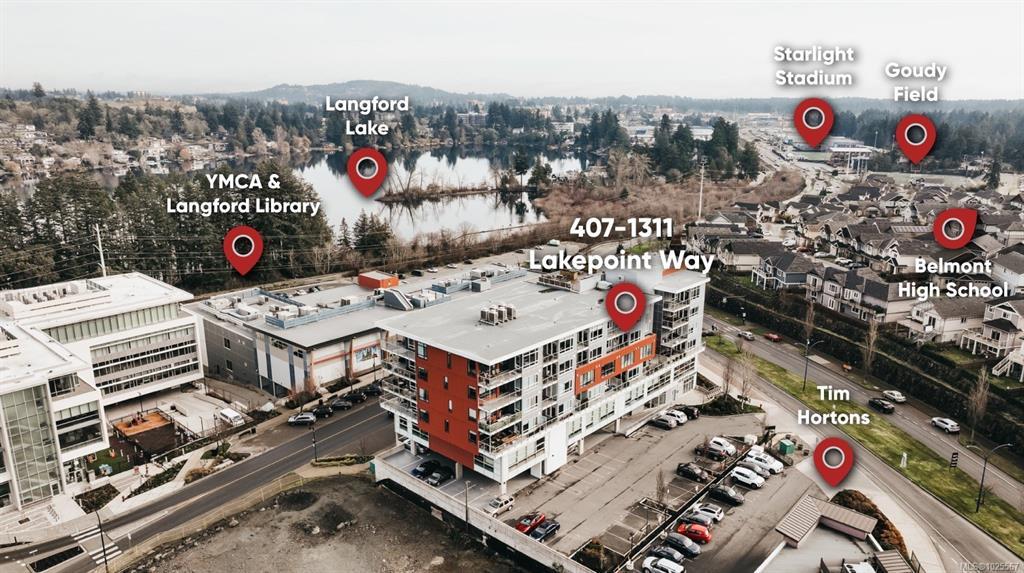 Modern junior one-bedroom suite in the popular Lakepoint One building at Westhills. Built in 2018, this well-designed condo offers 556 sq ft of efficient, open-concept living on the 4th floor with a south-facing exposure and excellent natural light. The bright living and dining area flows into a contemporary kitchen featuring quartz countertops, stainless steel appliances, and high-gloss cabinetry. The comfortable bedroom offers a tranquil retreat with sliding doors, complemented by convenient in-suite laundry. Enjoy outdoor living on the rooftop patio, ideal for relaxing or entertaining. This condo includes a secure underground parking stall and storage locker. Building amenities include kayak storage, dog wash station, car wash station, and common EV charger. Ideally located steps to Langford Lake, the YMCA, Victoria library, conservatory of music, Tim Hortons, and Starlight Stadium, with elementary, middle, and high schools all within a five-minute walk. Pet and rental friendly.