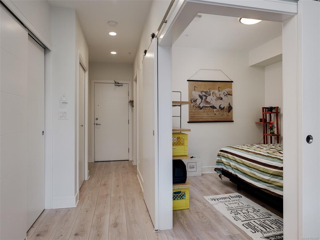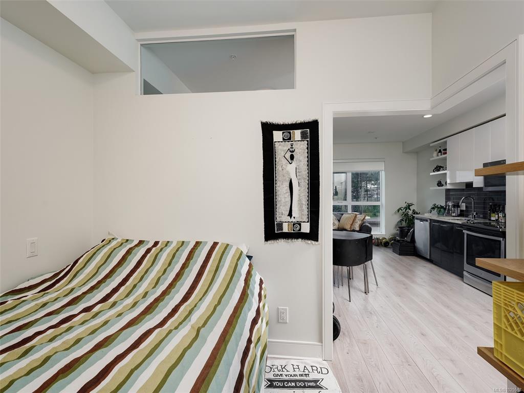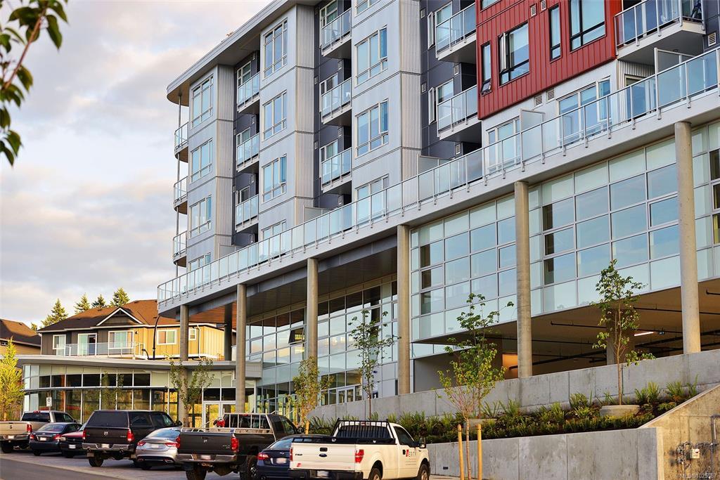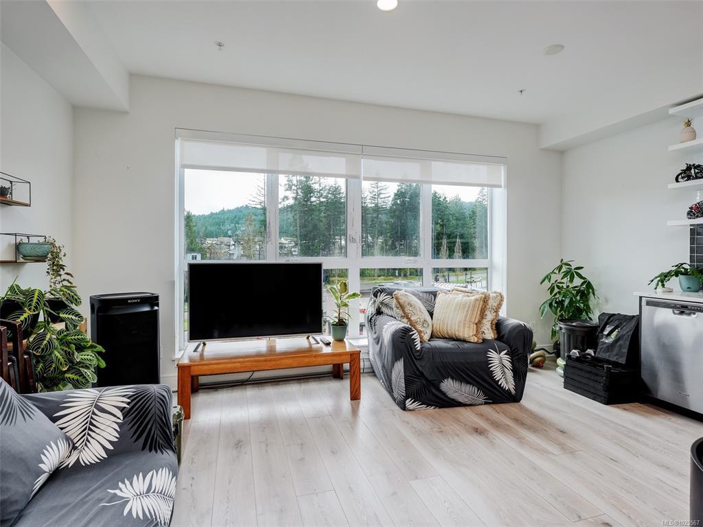 Modern junior one-bedroom suite in the popular Lakepoint One building at Westhills. Built in 2018, this well-designed condo offers 556 sq ft of efficient, open-concept living on the 4th floor with a south-facing exposure and excellent natural light. The bright living and dining area flows into a contemporary kitchen featuring quartz countertops, stainless steel appliances, and high-gloss cabinetry. The comfortable bedroom offers a tranquil retreat with sliding doors, complemented by convenient in-suite laundry. Enjoy outdoor living on the rooftop patio, ideal for relaxing or entertaining. This condo includes a secure underground parking stall and storage locker. Building amenities include kayak storage, dog wash station, car wash station, and common EV charger. Ideally located steps to Langford Lake, the YMCA, Victoria library, conservatory of music, Tim Hortons, and Starlight Stadium, with elementary, middle, and high schools all within a five-minute walk. Pet and rental friendly.