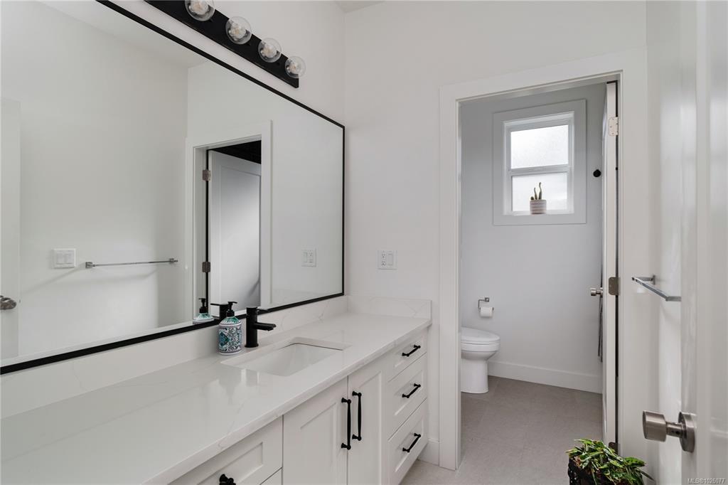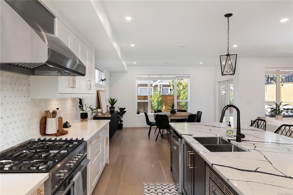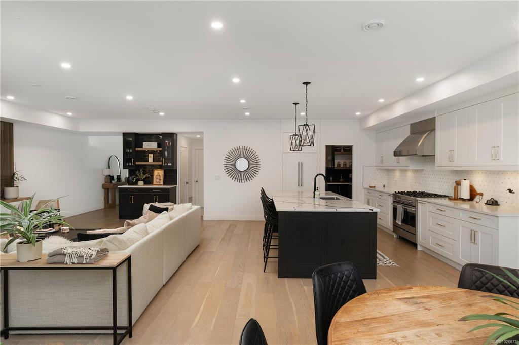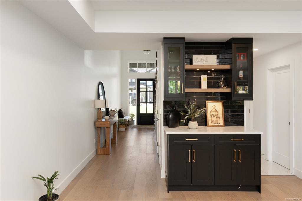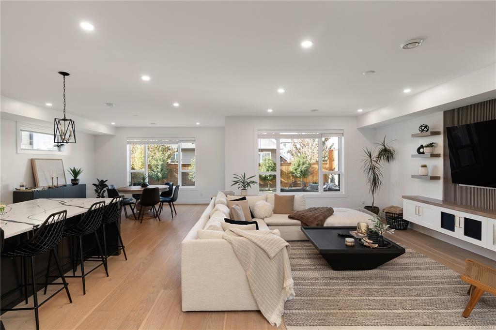 Enter this beautiful 2022 built home that feels custom at every turn. Spanning over 3,000 sq.ft. with a legal 1-bed suite above the garage, this home offers space and quality throughout. The grand entry with 18-ft ceilings leads to an open-concept main floor featuring a stunning kitchen with Fisher & Paykel appliances, oversized island, walk-in pantry, and dining area overlooking the tidy, landscaped backyard. Enjoy a covered patio perfect for year-round entertaining. Built-ins and wood accents add warmth and style. Upstairs offers a flexible loft, 3 bedrooms, and spacious laundry. The primary suite features a spa-inspired ensuite and walk-in closet. Complete with a 2-car garage, ample parking, heat pump, and located steps to Olympic View Golf Course, a new elementary school, and the seaside amenities of Royal Bay.