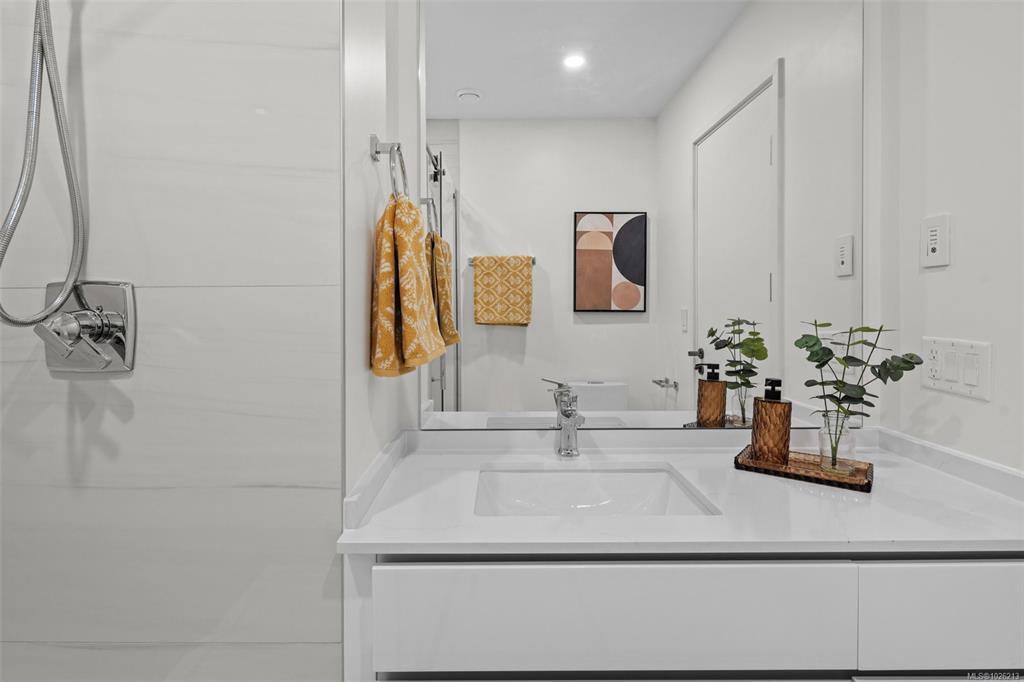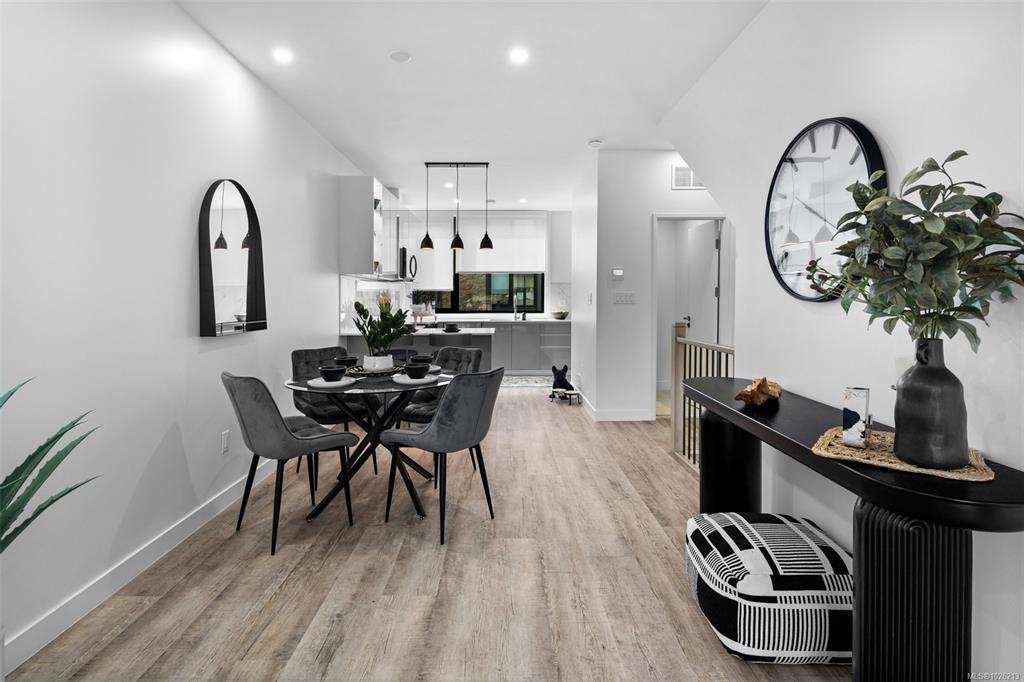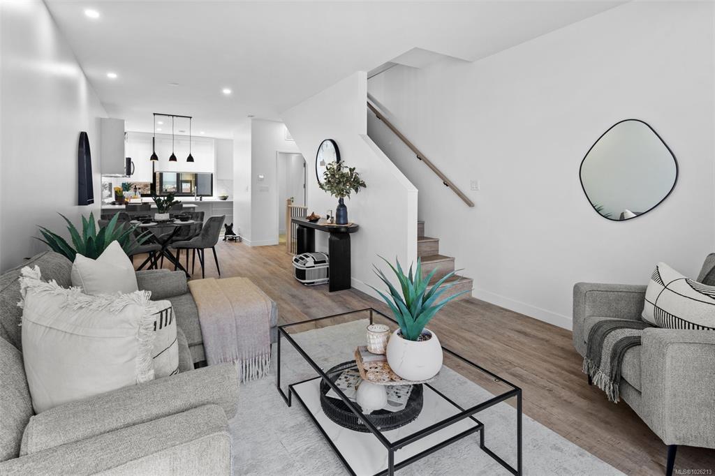 Best deal in the West Shore! Ready for immediate occupancy! See the difference of European design and craftsmanship. This unit features two bedrooms each with ensuite bathrooms, main floor powder room, and open concept living space. Features not seen elsewhere include triple glazed windows, steel roofs, fully ducted multi-zone heat pump / air conditioning systems, custom closet systems, solid core interior doors with magnetic latches and more. No BC Property Transfer Tax, 30 year amortization CMHC mortgages, low strata fees, two dedicated parking spots, possible 35 year amortization through our financing partner. Location is very central and walkable to all downtown Langford amenities. See the difference of European design and craftsmanship.