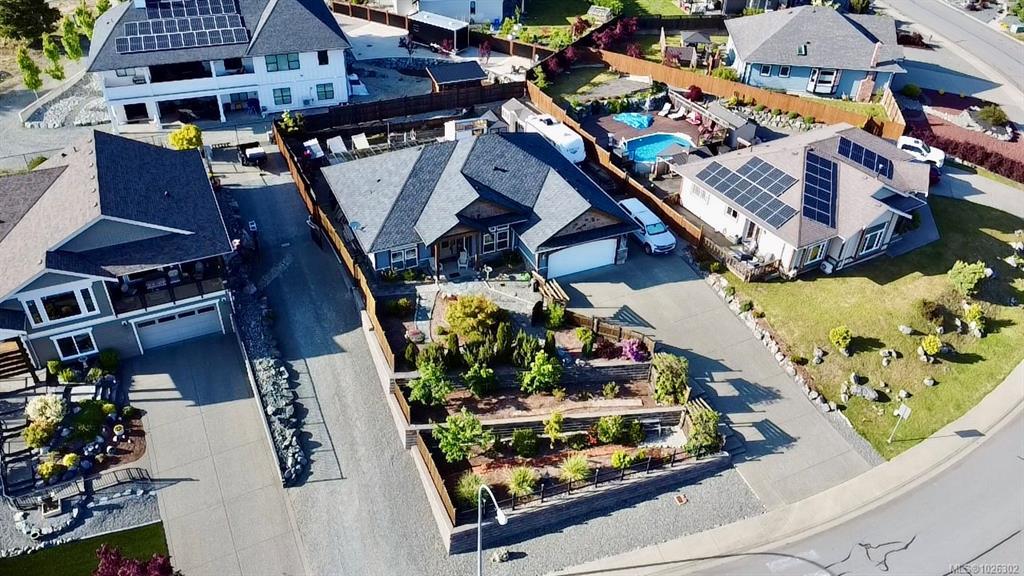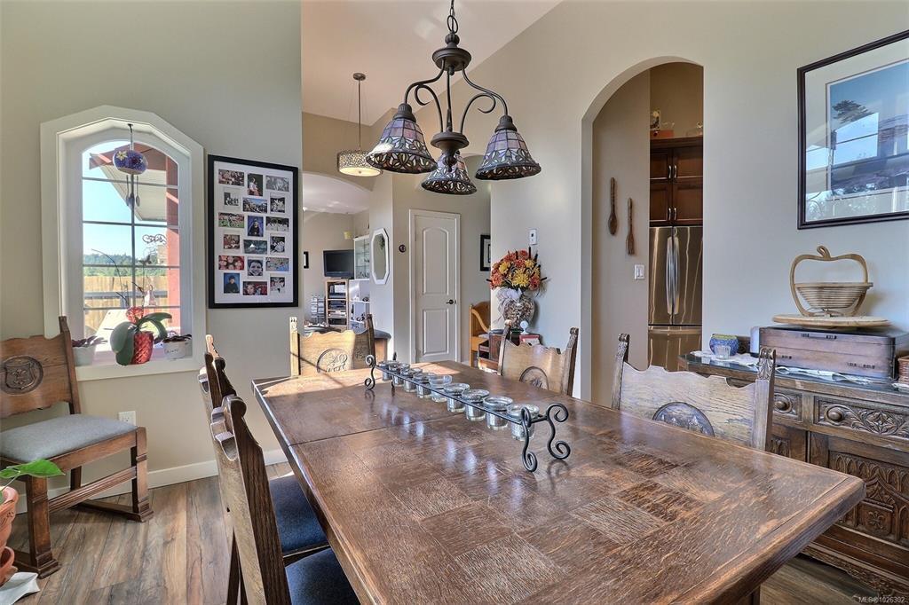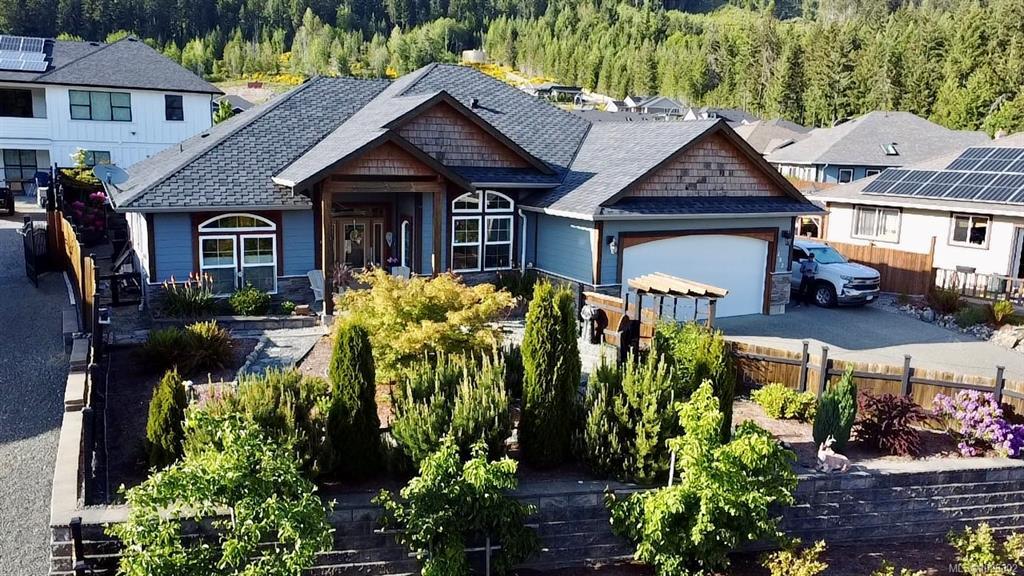 This beautiful 1850 sqft, 3 bedroom, 2 bathroom rancher is located in The Slopes at Lake Cowichan. The home has a 16’ vaulted ceiling at the peak and beautiful arched entryways throughout, giving this home a certain elegance. Enjoy the Chef’s kitchen with solid Maple and Birch wood cabinets, stainless steel appliances, Granite countertops with eat up bar that is open to the living room with French doors that lead to a covered patio which is great for those year-round barbecues. The Primary bedroom has a walk-in closet, access to the covered patio and a spa like 4pc ensuite. The home boasts a formal dining room, office, 2 more good sized bedrooms, 4pc bathroom and laundry room that leads to your double car garage. The backyard has raised garden beds, green house, 2 storage sheds and is fully fenced with RV parking.