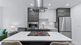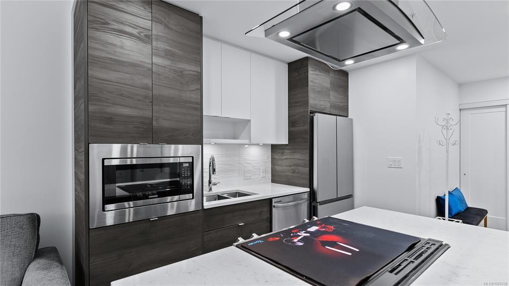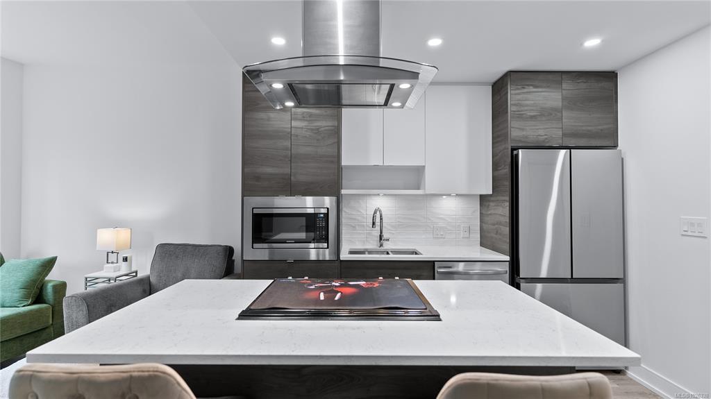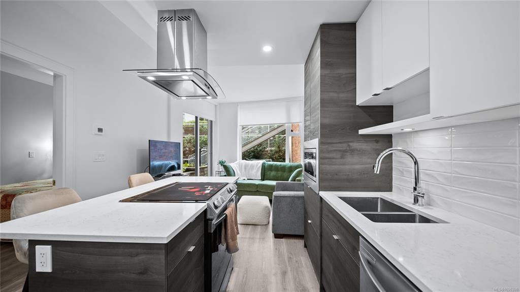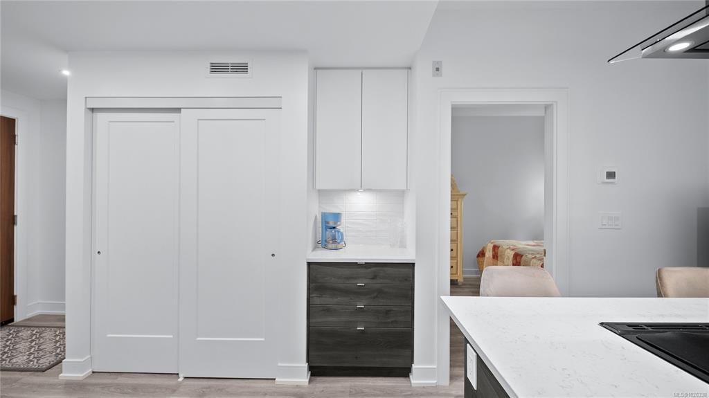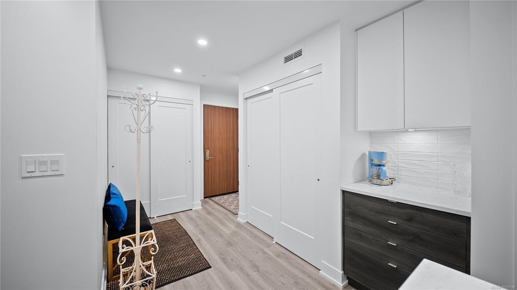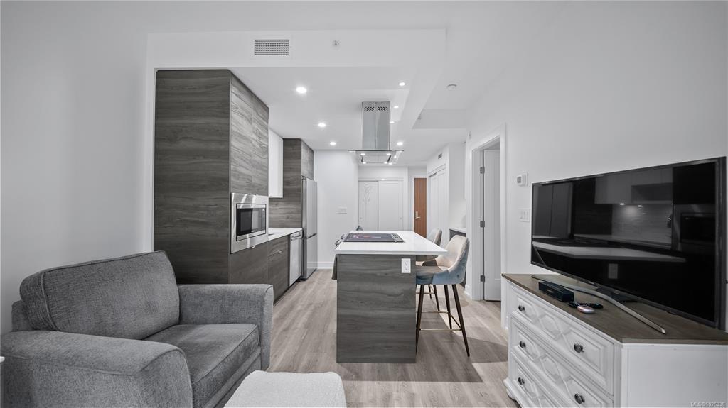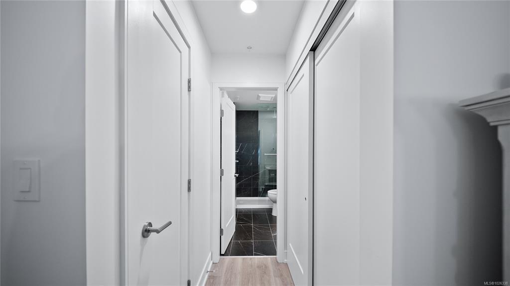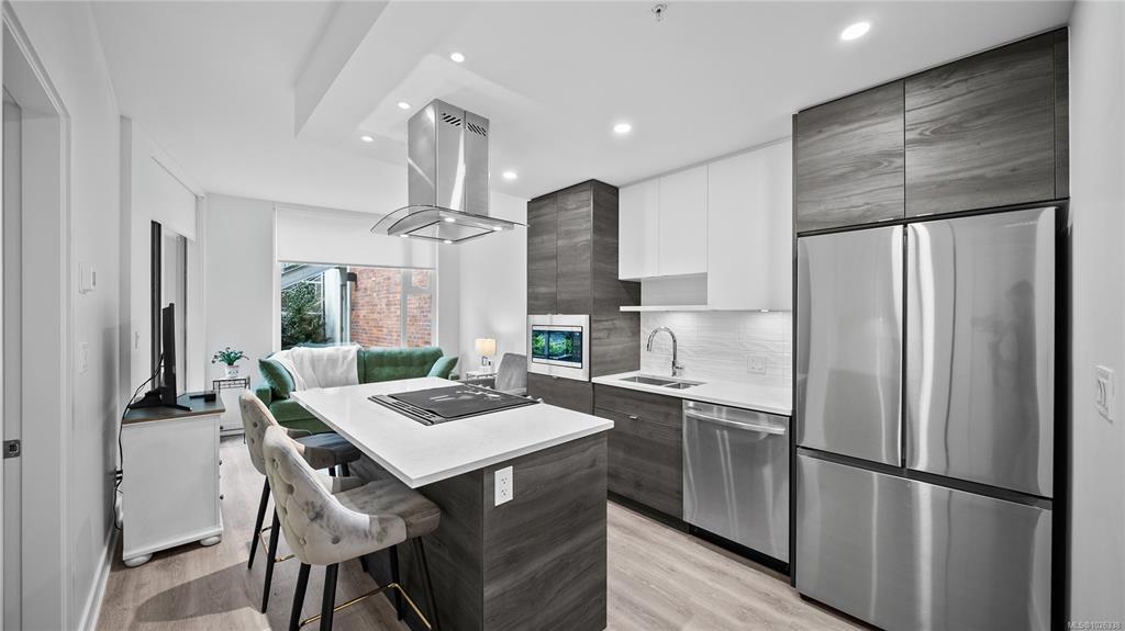Welcome to Pearl Residences, one of Victoria’s newest steel-and-concrete waterfront buildings, ideally located in the heart of Old Town. This modern 1 bed, 1 bath home includes 1 secure underground parking stall and extra storage. Featuring 9-ft ceilings and a smart, open layout, the unit offers a private patio with inner harbour views. The contemporary kitchen boasts premium cabinetry, quartz countertops, high-end appliances, and soft-close drawers. The spa-inspired bathroom includes radiant in-floor heating, and an efficient heat pump provides year-round comfort. With a Walk Score of 99, enjoy steps-to-everything convenience plus access to a fitness centre, bike storage, and an amenity room with kitchen for entertaining.