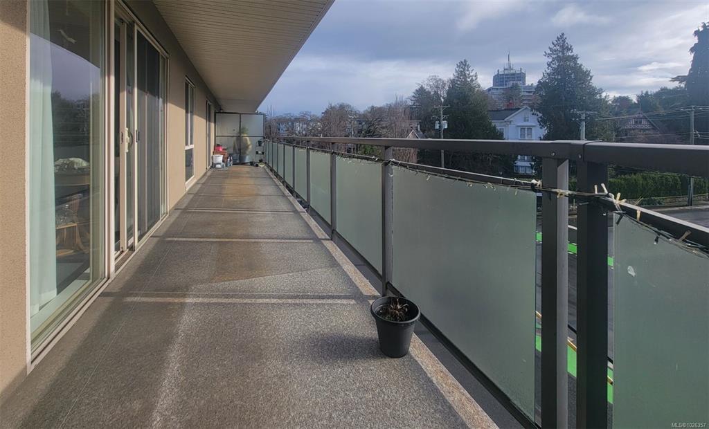TOP FLOOR | 1,192 SQFT INTERIOR | 415 SQFT PRIVATE DECKs Rare opportunity to secure the "Interior King" of Stadacona Ave. Expansive south-west corner residence offers a massive footprint rarely found in the Victoria Core. Perched among the treetops with vaulted ceilings & a feature wood-burning fireplace, this home provides ultimate privacy + a house-like feel. The 1,192 sqft interior is nearly 35% larger than standard 2-bedroom units in the building, complemented by an incredible 415 sqft private decks—perfect for outdoor living & urban gardening. Walking distance to RJH + Downtown, with premium amenities including an indoor heated pool, hot tub, sauna, workshop & games room.