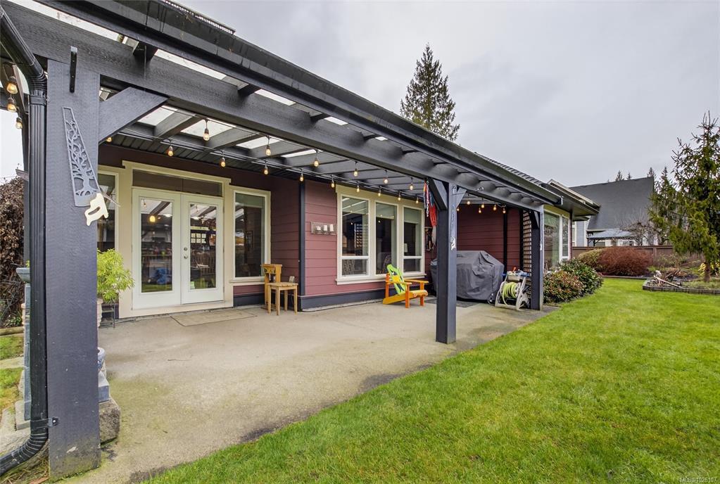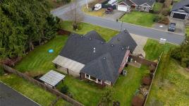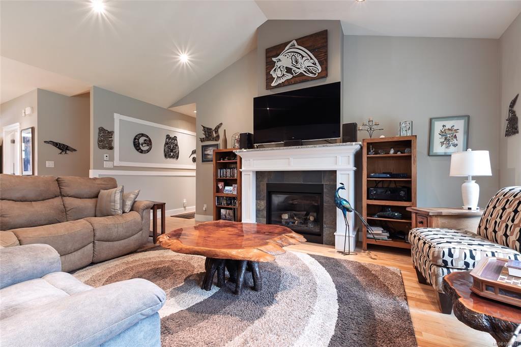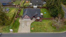 Experience the epitome of West Coast elegance in this executive rancher, perfectly situated in the desirable Twin Cedars development of Cobble Hill. Masterfully crafted by GT Mann Construction, this 2,115 sq. ft. residence blends sophisticated design with the ease of main-level living. The heart of the home is an expansive open-concept great room featuring vaulted ceilings, maple hardwood floors, and a majestic gas fireplace. The gourmet kitchen impresses with granite counters, shaker cabinetry, and a large island, while French doors lead to a covered patio with a gas BBQ outlet. The primary suite is a true sanctuary, boasting a spa-like ensuite with a tiled walk-in shower, soaker tub, and heated floors. Functional extras include a heat pump, built-in vac, a large garage with a bonus room above, and a unique over-height crawl space with stairway access. Outside, enjoy a fenced, low-maintenance yard with sprinklers, and a cozy outdoor fireplace—all just a short commute to Victoria.