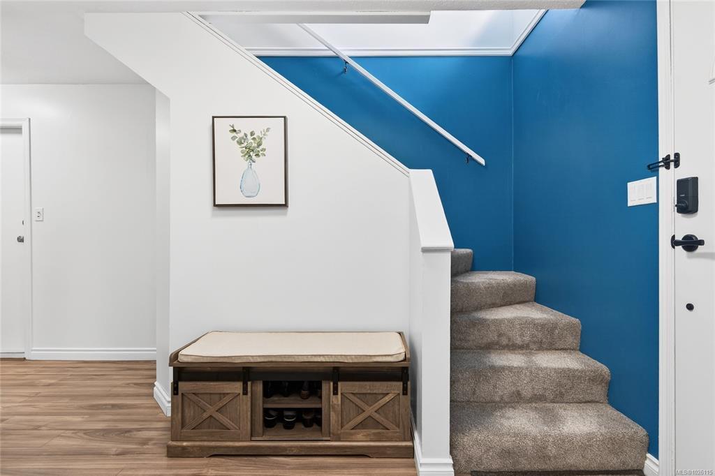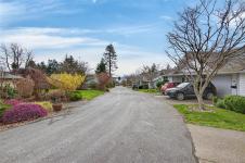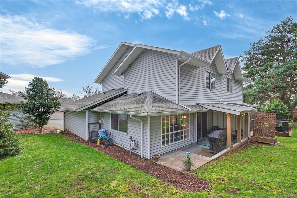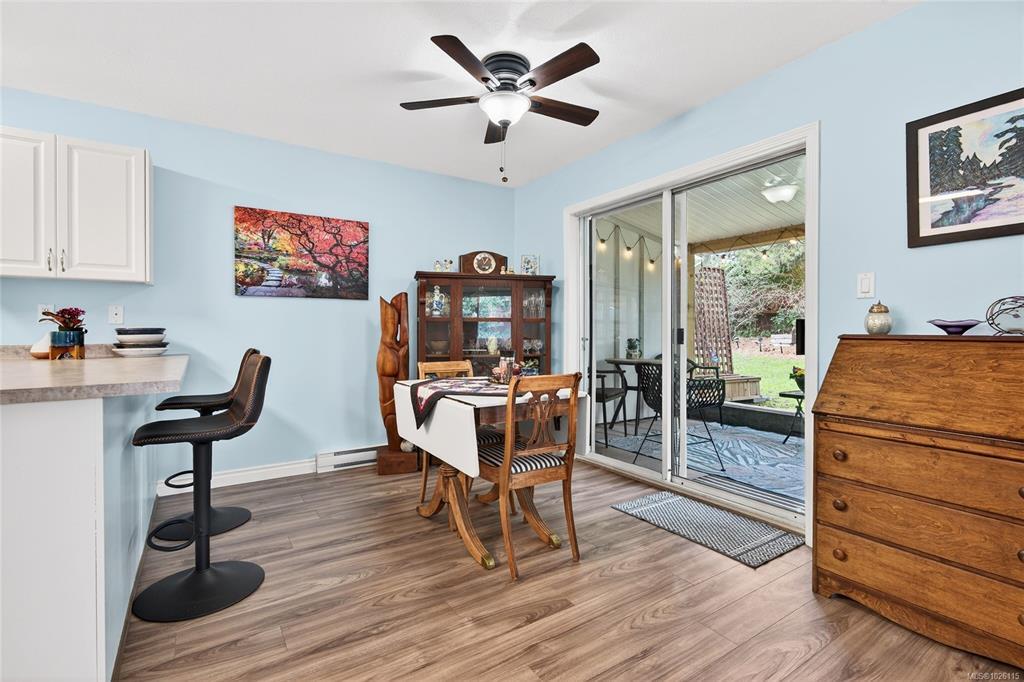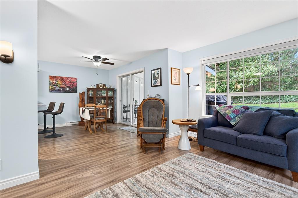 Welcome to Eagle Ridge Estates a beautiful 55 plus community in the town of Comox. This 1283 sqft two story townhouse style unit features a bright and spacious kitchen with plenty of cupboard and counter-space, the kitchen opens to a dining area and large living room complete with warm Gas Fireplace. Downstairs you will also find a updated powder room, laundry and garage access for your car, storage or recreation items. Upstairs is two bright bedrooms including a primary with walk-in closet, and a second bedroom that captures lovely ocean and mountain views and a fresh fully renovated main bathroom also there is a bonus storage room upstairs. This complex is in a great location within walk-able amenities and located in a great low maintenance strata community including access to a clubhouse and guest suite for overnight visitors. Lots of recent updates including easy care flooring, fresh paint, new window coverings, and a fully redesigned rear covered patio space.