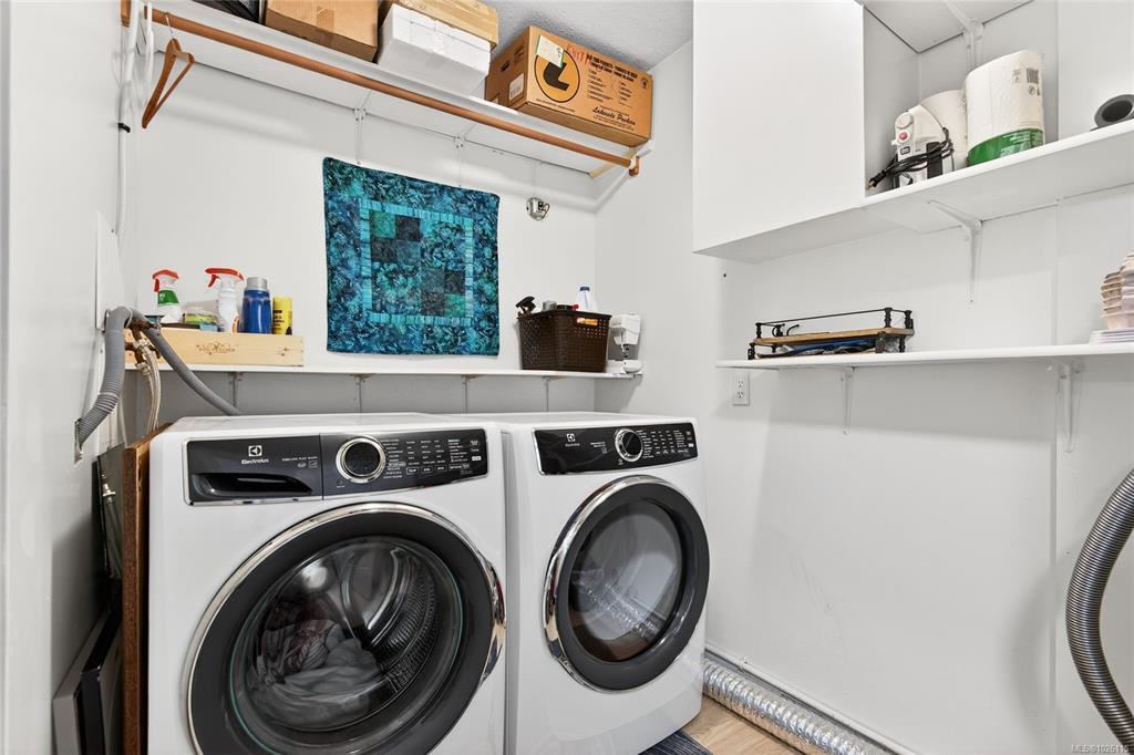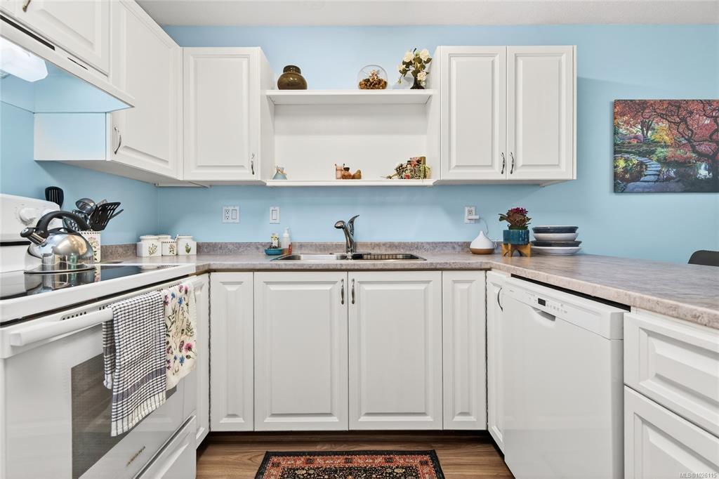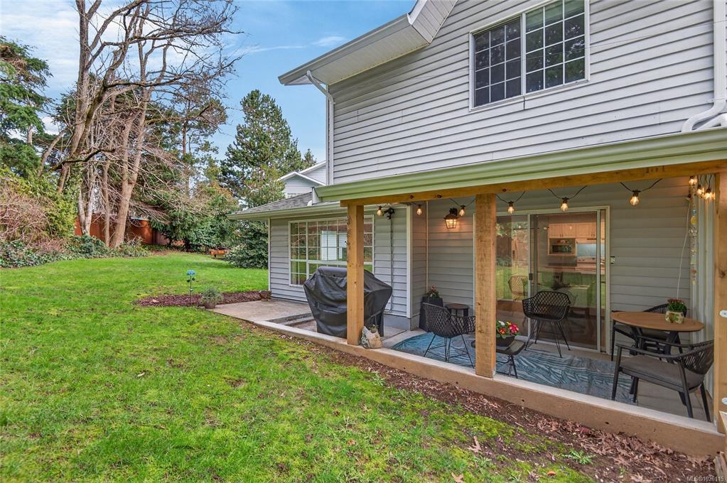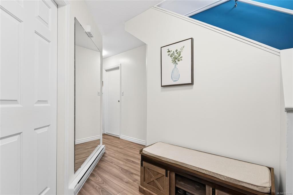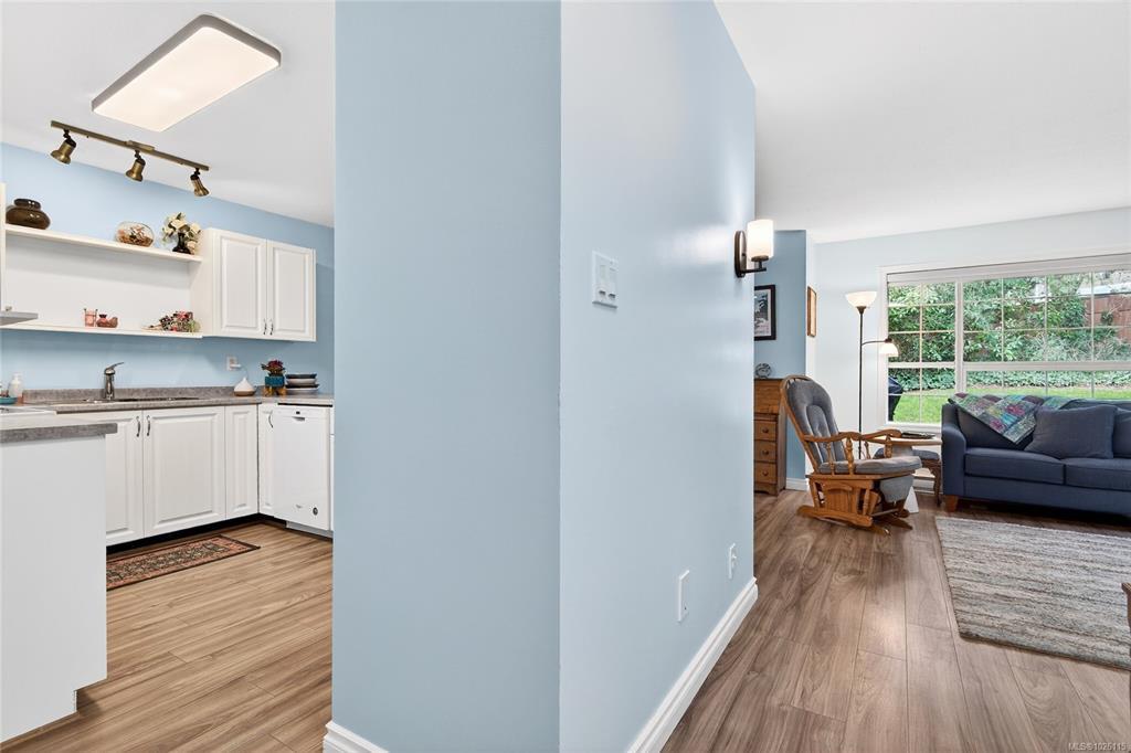 Welcome to Eagle Ridge Estates a beautiful 55 plus community in the town of Comox. This 1283 sqft two story townhouse style unit features a bright and spacious kitchen with plenty of cupboard and counter-space, the kitchen opens to a dining area and large living room complete with warm Gas Fireplace. Downstairs you will also find a updated powder room, laundry and garage access for your car, storage or recreation items. Upstairs is two bright bedrooms including a primary with walk-in closet, and a second bedroom that captures lovely ocean and mountain views and a fresh fully renovated main bathroom also there is a bonus storage room upstairs. This complex is in a great location within walk-able amenities and located in a great low maintenance strata community including access to a clubhouse and guest suite for overnight visitors. Lots of recent updates including easy care flooring, fresh paint, new window coverings, and a fully redesigned rear covered patio space.