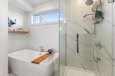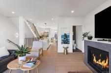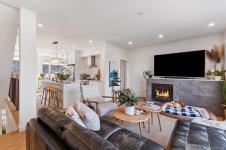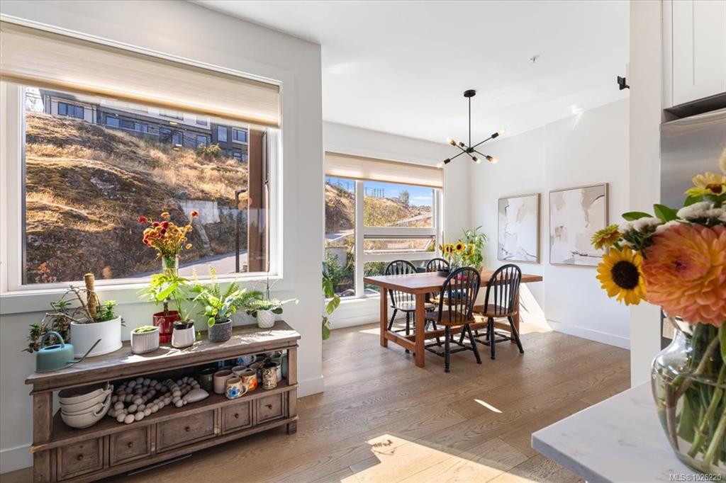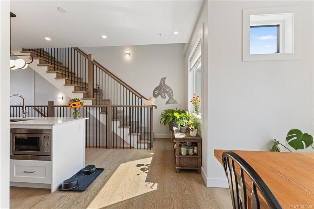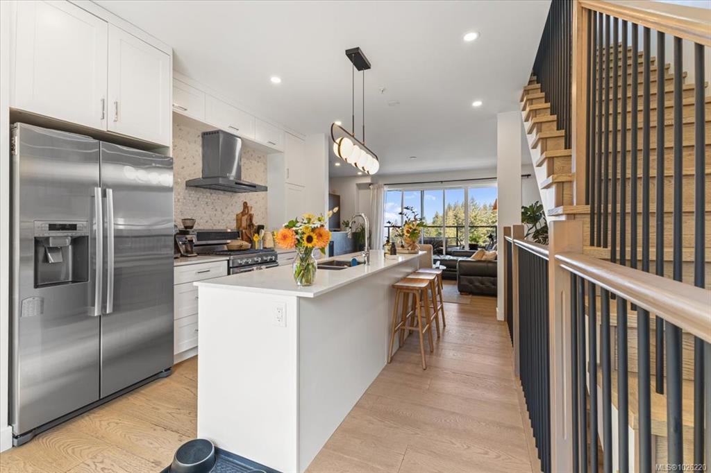 Experience breathtaking ocean and mountain views from this modern North Nanaimo townhouse, complete with a 700 sqft rooftop patio designed for entertaining or relaxing in style. Offering 1,667 sqft across three levels, this 3-bedroom, 3-bathroom home combines thoughtful design with modern finishes. The main level showcases an open-concept kitchen, dining, and living area with balcony access, large windows, and abundant natural light. The entry-level primary suite includes a private balcony, walk-in closet, and spa-inspired 5-pc ensuite with a soaker tub. The lower level features a spacious second bedroom with walk-in closet, a 5-pc bath, office and laundry room. Every floor offers balcony access to maximize the sweeping views. Located near Linley Valley trails, shopping, transit, and Nanaimo North Town Centre, this home blends luxury with everyday convenience in one of Nanaimo’s most desirable neighbourhoods.