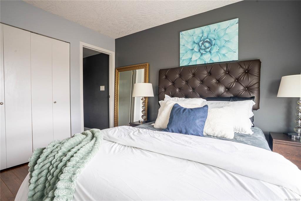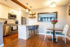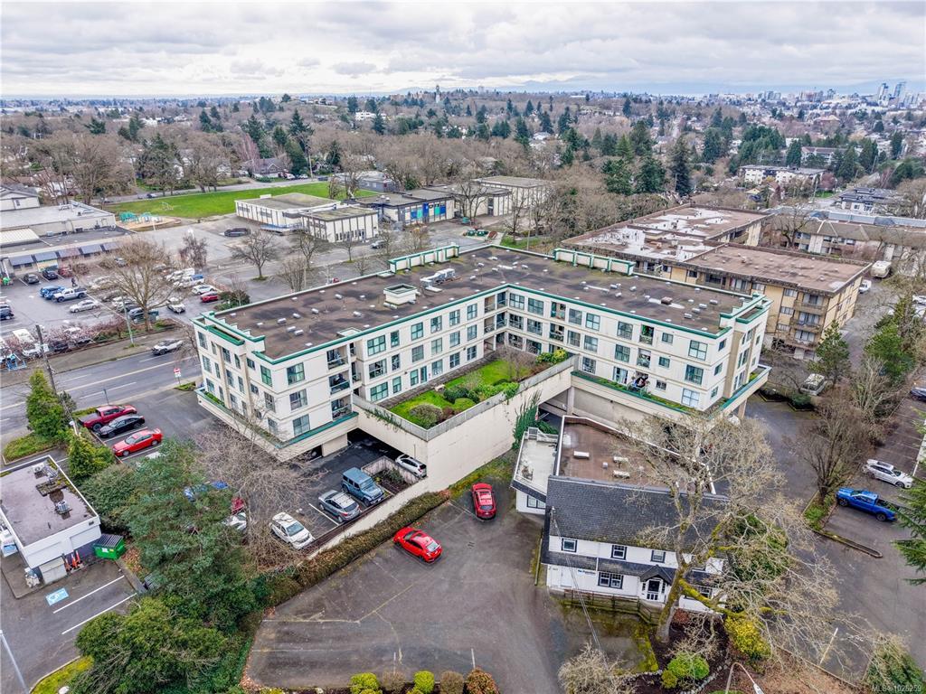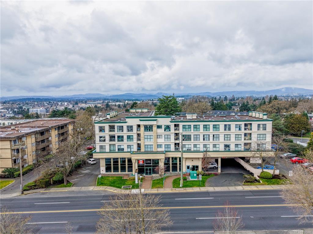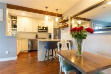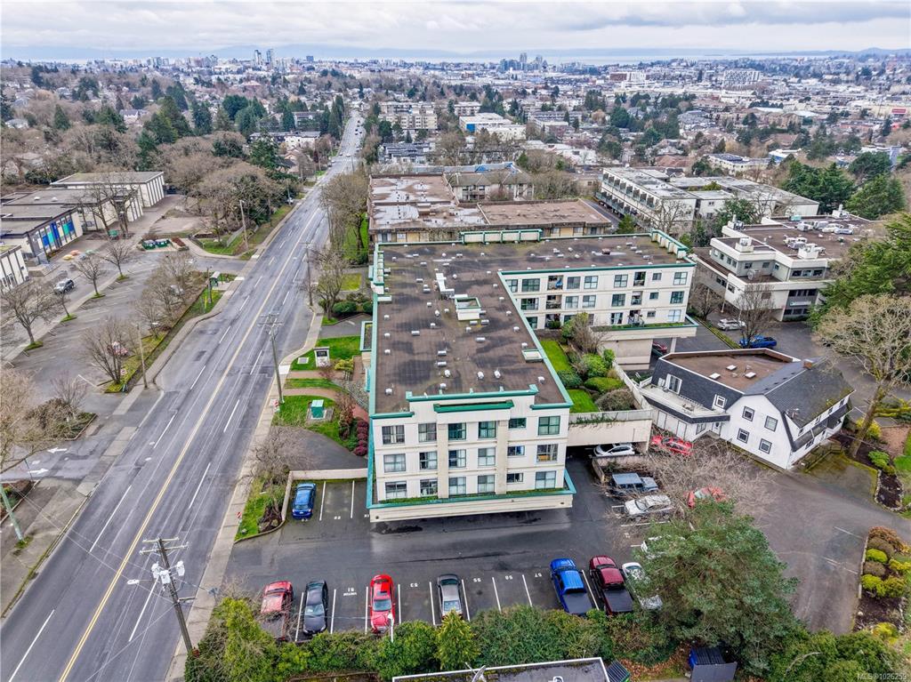 Beautifully updated 2-bedroom, 2-bathroom condo offering 723 sq. ft. of bright, functional living in a central location. Ideal for first-time buyers, young families, downsizers, or investors. The open-concept living and dining area features large windows, warm flooring, and access to a covered balcony—perfect for morning coffee or relaxing outdoors. The modern kitchen showcases white shaker cabinets, stainless steel appliances, quartz countertops, tile backsplash, and an island with seating. The primary bedroom includes ample closet space and a private ensuite, while the second bedroom suits guests, a home office, or nursery. A main bath, Miele washer and dryer, added storage, and a welcoming entry complete the home. Close to Uptown, downtown Victoria, parks, schools, and transit—move-in ready and exceptional value.