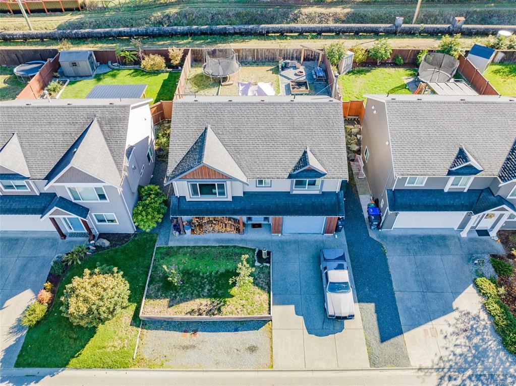 Welcome to 2174 Village Dr, a newly built home in a warm and vibrant community in the heart of Cedar that's just steps to local amenities. This home is ideal for families which includes 4 beds, 2 baths, over 2000 sqft of living space, fully fenced low maintenance yard. As you walk into the home you have a wide entry, large bedroom to the left which could be perfect for home office as well, easy access to garage, down from that there's a family room, rec room, laundry and a rough in for a 3rd bathroom, to complete the lower level there's a wood burning fireplace to cozy up in the winter that can efficiently heat the whole home. Upstairs you have 3 good sized bedrooms, open concept living and kitchen area filled with natural light, large island, mountain views and easy access to your backyard which faces South, perfect for relaxing. The primary bedroom has a walk-in closet, 4 piece ensuite and a mountain view which in the evenings has the sunset setting over them, a beautiful backdrop.