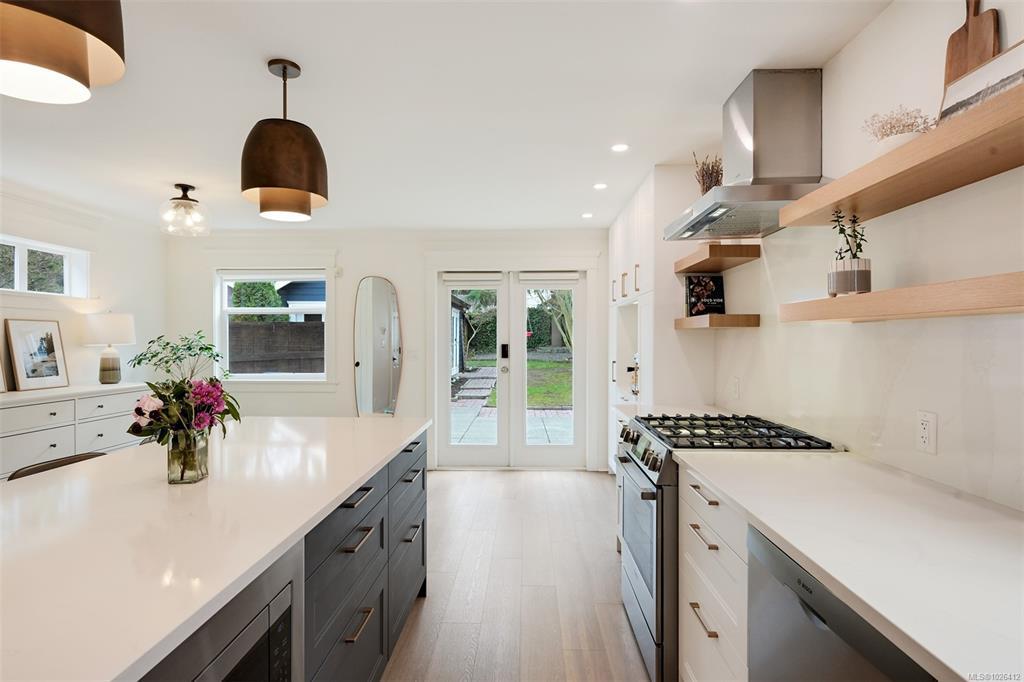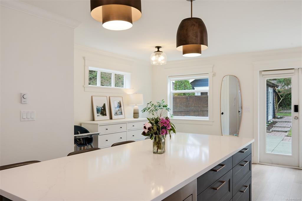 Fully updated three bedroom three bathroom home in the heart of Fernwood! Move-in ready 1997 built home with character inspiration has been extensively updated in recent years with a designer kitchen with new upgraded Bosch appliances and entertaining island, new flooring throughout, interior and exterior both fully painted and new lighting and hardware. Additional features include cozy gas fireplace in living room, vinyl windows throughout including two skylights, 13x13 primary bedroom with walk-in closet and full ensuite bathroom and detached garage has been converted to home office/gym and additional storage space. Gorgeous south facing fully fenced backyard ideal for pets, kids or gardeners. French doors to your private patio space and grass area with garden shed. Great curb appeal with landscaped front yard and front porch. Excellent location just two blocks to shops and restaurants in Fernwood Village, Vic High a block away and a very short walk to downtown!