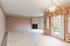 A gas fireplace anchors the main living space, with a separate dining area flowing into the living room. The main level also includes a bedroom (ideal for a home office or guest room), bathroom, and laundry room.