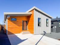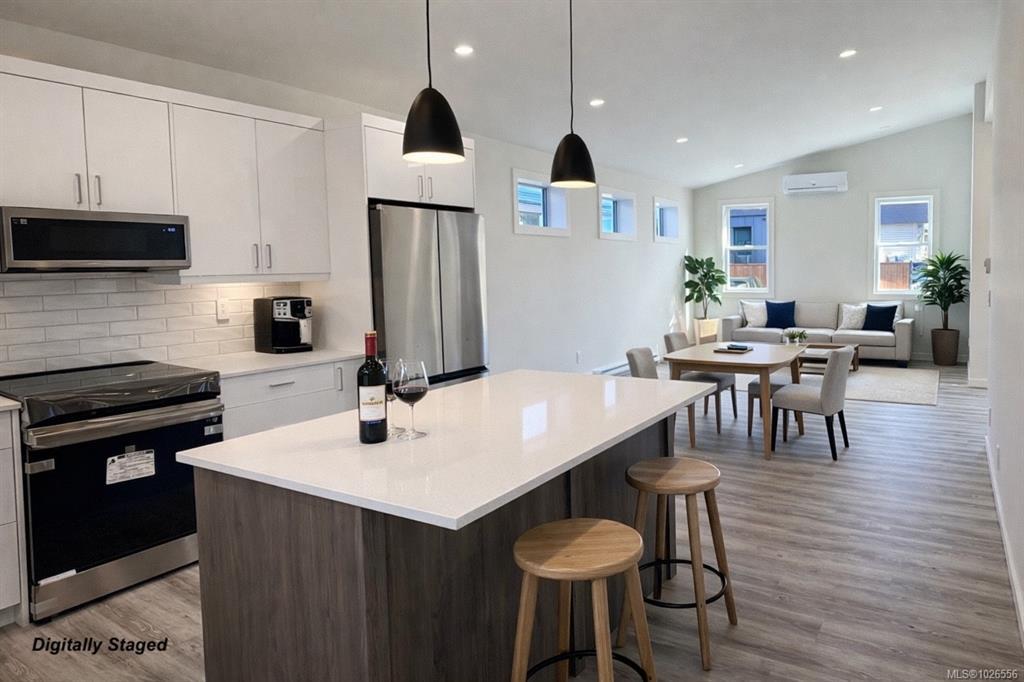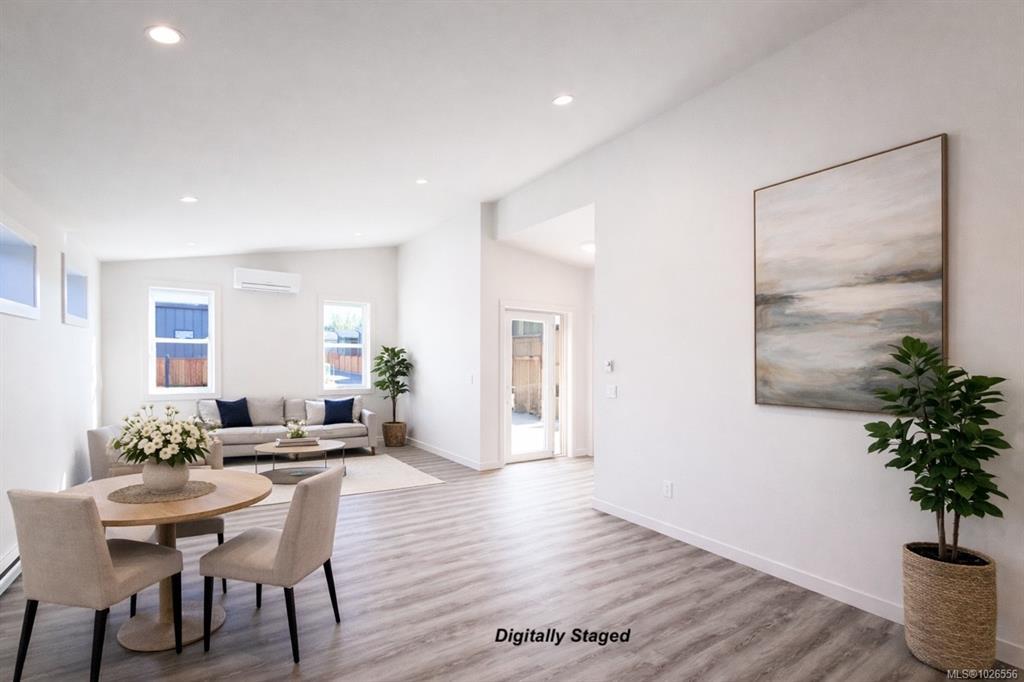 New and Improved, the Northern Flicker is a stunning 2 bed 2 bath home offering incredible value. Spanning over 1,200 sq ft, you'll be impressed with the spacious layout, contemporary design and high end finishings. Turn-key ready with full appliance package, quartz countertops, heat pump, modern kitchen cabinets, large island and well appointed laundry room with storage, sink and quartz countertops. The open concept kitchen-dining-living area is light and airy with soaring 12 ft vaulted ceilings and 7 windows for plenty of natural light. The show stopper is the 14' x 10' covered rear patio, perfect for relaxing with family and entertaining friends. With a metal frame, metal siding and metal roof, maintenance Is minimal. Notice the thick 12' walls, high energy performance and low running costs. GST applies. The Flats of Cumberland is a brand new community of 56 beautiful homes.
