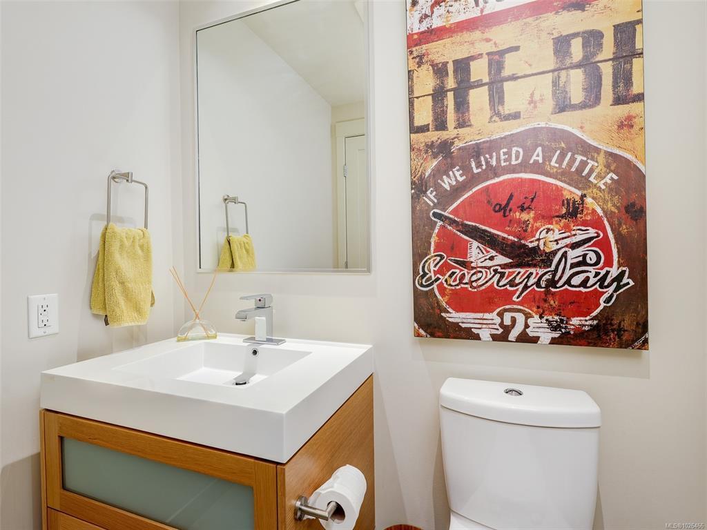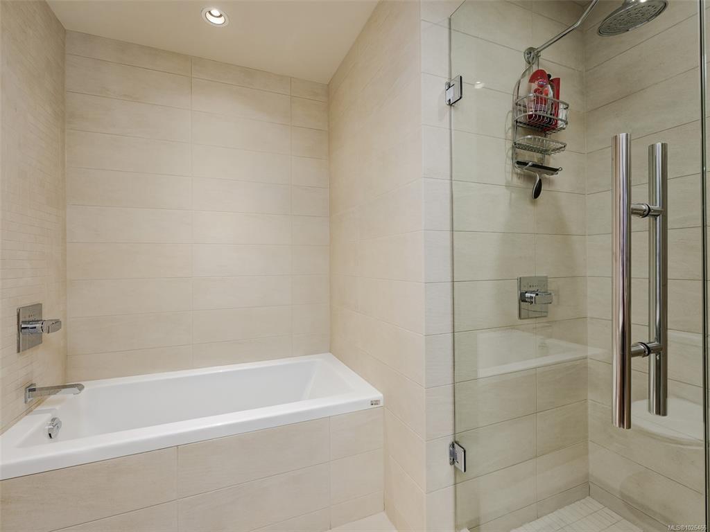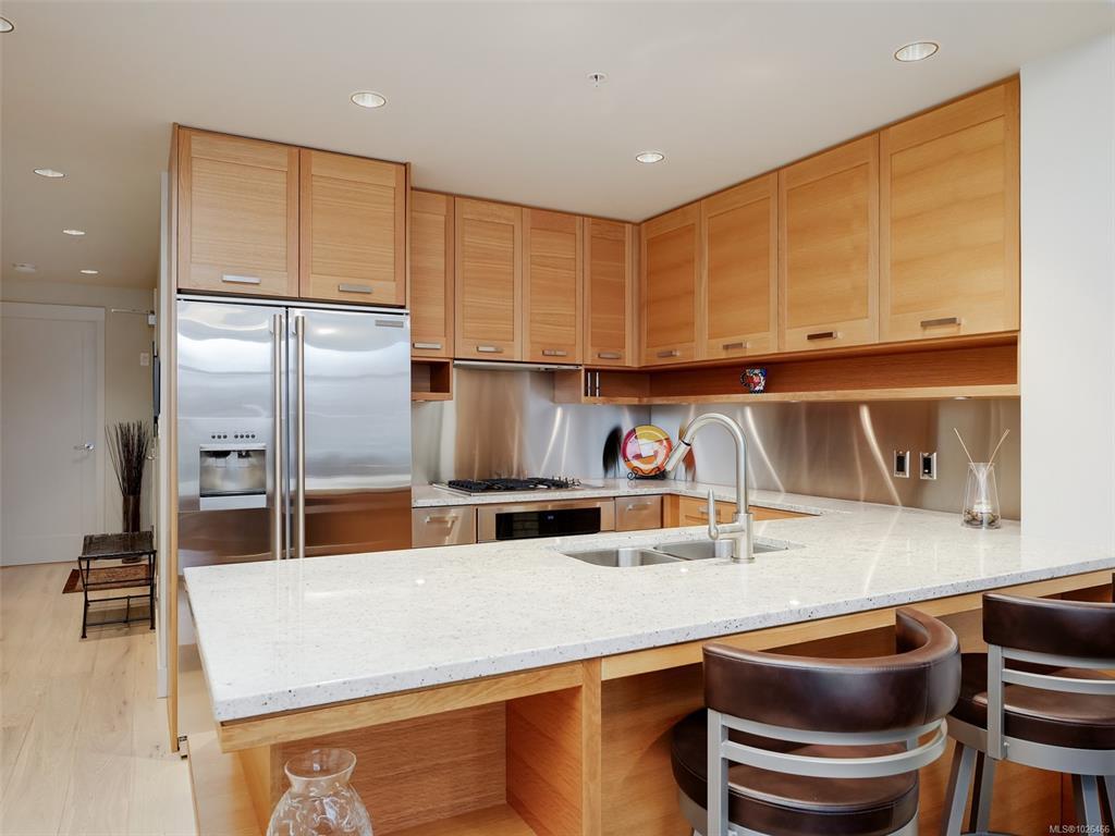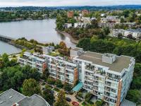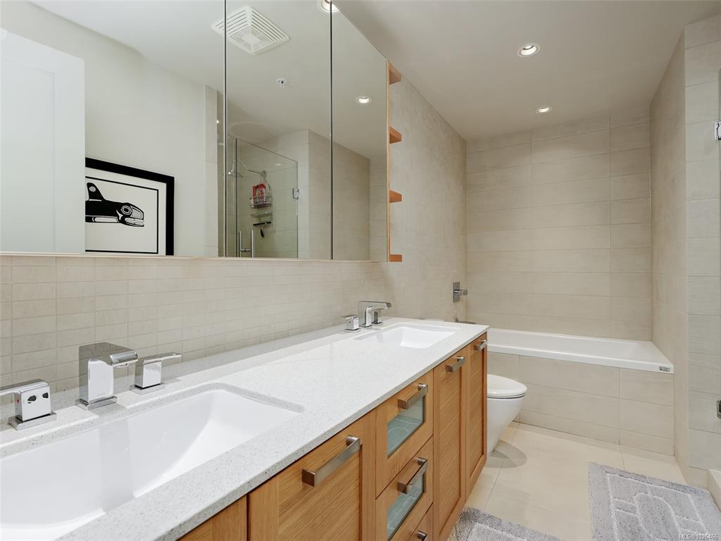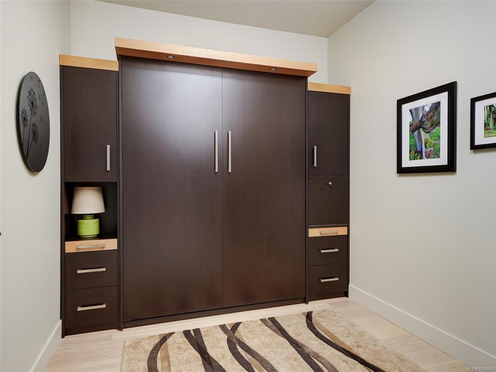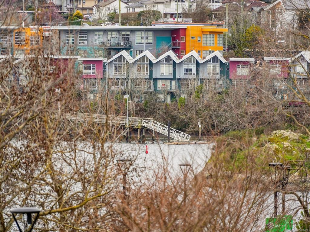 WELCOME TO 365 WATERFRONT! This award winning steel and concrete building was built by Concert Properties in the desirable Selkirk Waterfront. The building showcases stunning architecture, a graciously appointed lobby, & generous hallways decorated with art. Inside the 857 sqft 1 bedroom plus den you get; 2 bathrooms including 5 piece ensuite with soaker tub & shower, tile & warm hardwood floors, a designer kitchen with oak shaker cabinets & quartz counters, stainless appliances, a gas cooktop, a generous dining/living area with views, and a den with murphy bed for guests. This pet friendly condo offers the perfect blend of style and function. Bonus features include a large deck with room for BBQ's & entertaining, separate storage area, secure underground parking, EV charging capability, bike and kayak storage. All located just steps to the Galloping Goose Trail & Selkirk bridge, the Gorge waterway, parks, rowing, fitness, coffee, dining, & 5 minutes to beautiful downtown Victoria.