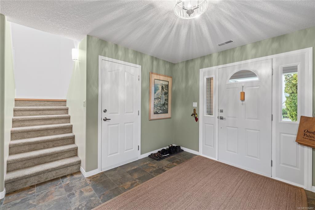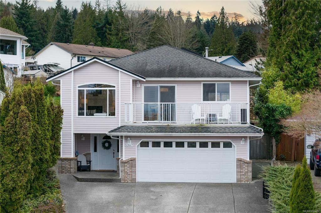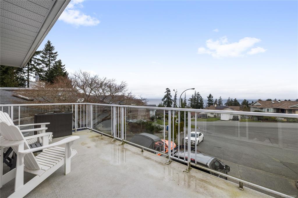 Perched at the top of a quiet cul-de-sac & oriented perfectly toward the water, this home captures sweeping views over the Georgia Strait, with ever-changing ocean & mountain vistas. The main level offers 3 bedrooms, including a spacious primary suite with walk-in closet & 4-pc ensuite & laundry rough-ins. At the front of the home, a formal living room with a gas fireplace & adjoining dining area open onto the deck. The kitchen features generous counter space, ample cabinetry & a brand-new appliance package. Off the kitchen, a bright breakfast nook & family room lead to a private rear deck. Downstairs provides excellent flexibility with a large rec room & a den complete with its own ensuite. Recent updates include engineered hardwood flooring, new stair carpet, fresh paint, updated lighting, counters & fixtures. The tiered backyard offers raised garden beds & an upper terrace that maximizes the views. A spacious garage & room for RV or boat parking complete this move-in ready package.
