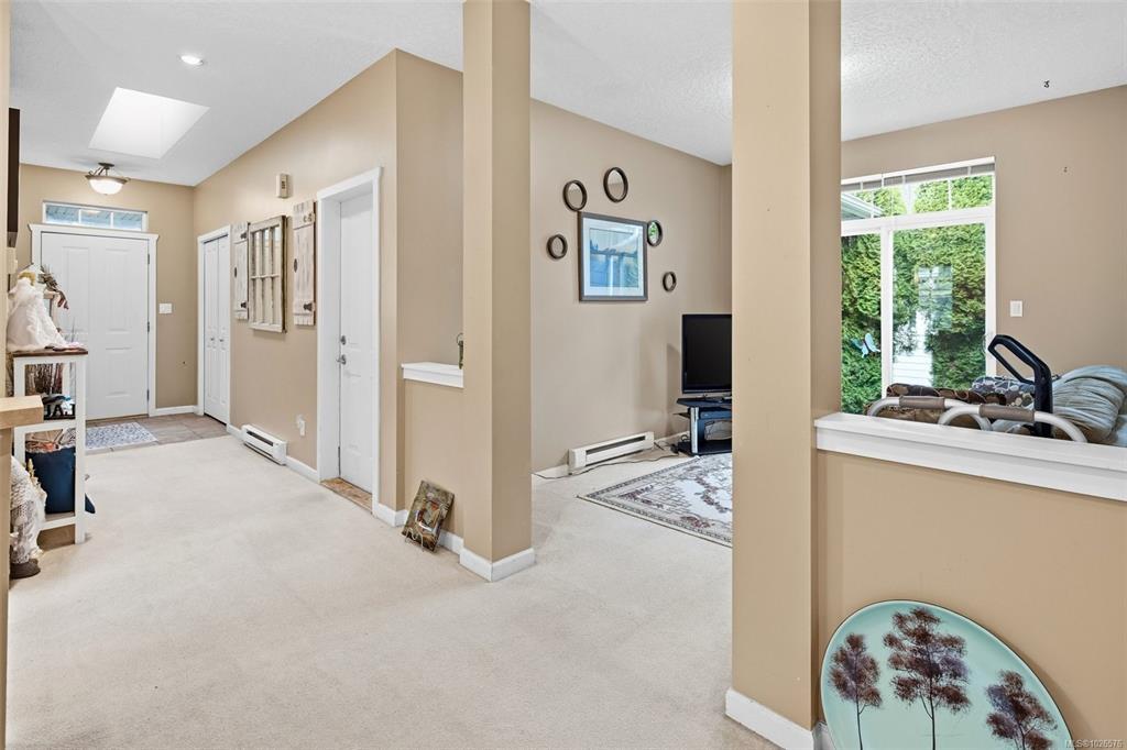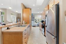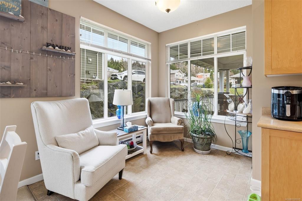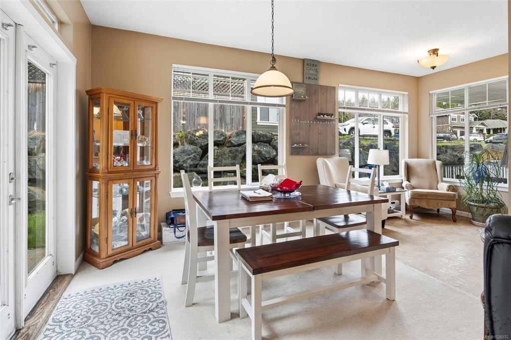 One-owner, 1468 sqft Qualicum plan 2 bedroom plus den rancher on a nearly quarter-acre lot, backing on to the mature trees and rushing of Demamiel Creek in Sooke's ever-popular Sunriver Estates. New roof, recent hot water tank and appliances, the home is in great overall condition, but leaves room for you to put your own personal touches on it. Great location with trails at your doorstep including the new Little River crossing, SEAPARC rec centre (pool/fitness/arena), Sooke Flats campground, Sooke River, and more just steps from your door. Enter into the bright skylight foyer. Huge open-plan living/dining/kitchen. Gas fireplace in the living room, eating bar in the kitchen. Large primary bedroom at the rear overlooking the sunny south-facing yard and mature trees. Ensuite bath with separate soaker tub and shower, and walk in closet. Second bedroom on other side of the house for privacy, and a 3 piece bath. Double garage, and patios on each side of the house to enjoy the outdoors.