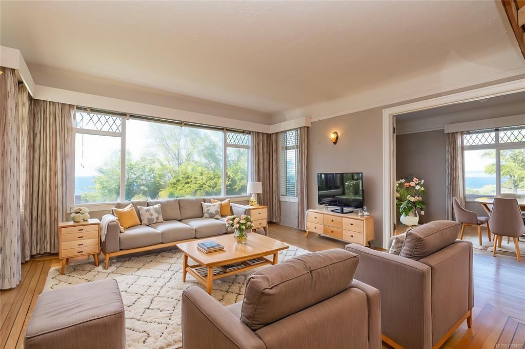 Imagine living right across the OCEANFRONT on Dallas Road, steps to Mile Zero and Beacon Hill Park. The breakwater and beach access is literally across the street. This 1938 character home with four bedrooms and three bathrooms offers panoramic OCEAN VIEWS all the way across to the Olympic Mountains. The original OAK HARDWOOD floors with walnut inlay adorn the living room and formal dining room. The wood fireplace centers the living room in this art deco home. The full basement with walk out access and GARAGE is ready for your personal touches. A separate one bedroom suite is self contained on the upper level and has its own private entrance on the back. Natural gas is connected for the hot water tank and the furnace is low maintenance electric. Perfect for the investor and/or homeowner, the location & Duplex Zoning of this property is arguably some of the best offered in Victoria. Please see both the YouTube video & 3D Matterport Tours.