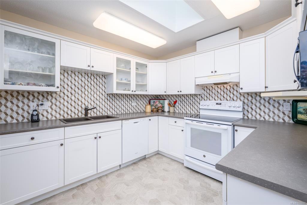 Welcome to “On the Park,” a well-kept 55+ community steps from Centennial Park. This bright & welcoming top-floor condo offers 1,139 sq ft with 2 bedrooms and 2 full bathrooms, including a spacious primary bedroom w/its own ensuite. The southern exposure brings in beautiful natural light, enhanced by vaulted ceilings & a cozy gas fireplace making the living area feel warm & open. The kitchen has been tastefully updated, & most flooring has been refreshed. A large deck off the living area, also accessible from the primary bdrm, provides a sunny place to relax. The home includes in-suite laundry & all appliances. Residents enjoy a storage locker (when available), bike/scooter storage, and exercise/multipurpose rooms. Pets are welcome with 2 cats or 1 small dog (up to 6.8 kg). The location is hard to beat right next to Centennial Park & an easy, level walk to shops, cafés, & services in downtown Duncan. A comfortable top-floor home in a friendly, walkable community.