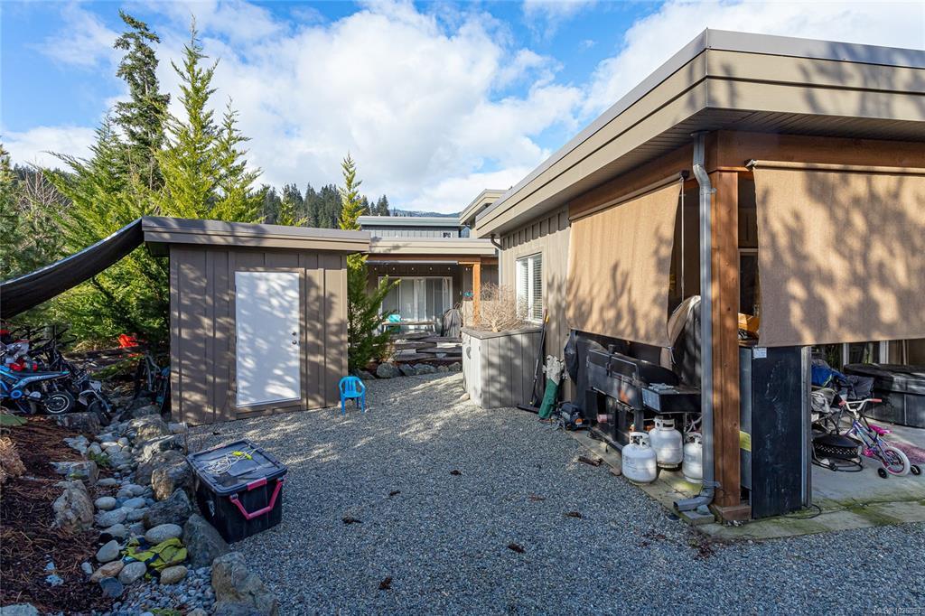 Welcome home to this beautifully evolved cabin in the Cabin Collection at Woodland Shores, a family legacy property on the shores of Cowichan Lake. This thoughtfully developed retreat features an open great-room layout with soaring 10-foot ceilings, and a well-appointed kitchen, with the primary bedroom and full bathroom conveniently on the main floor. Upstairs, the loft has been developed into a family room and additional bedroom with its own full bathroom. Outside, enjoy a covered patio and ample parking for family and guests. As an owner you'll have exclusive access to a private clubhouse, two heated pools, two hot tubs, BBQ area, horseshoe and bocce pits, a multi-use sports court, swimming beach, lakeside social building, and dedicated boat slip. Book your private tour today and start living the lake life you've always dreamed of.