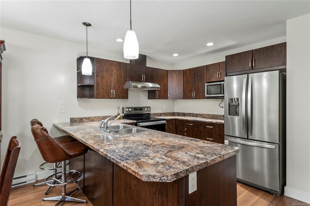 Welcome to this neat and tidy 1,276 sqft home offering comfortable main-level living. This 2 bed + den, 2 bath layout features open-concept kitchen, dining, and living area with direct access to your own private, sunny patio. This unit has just been refreshed with brand new carpets in both bedrooms, fresh interior paint throughout, and new LED lighting, giving the entire home a bright, clean, and move-in-ready feel. The efficient kitchen offers rich dark cabinetry and stainless appliances, while the spacious primary bed includes walk-in closet and 3-piece ensuite. The versatile den provides flexibility for guests, a home office, or hobby space. Located in the vibrant Village of Cumberland, you’re just a short walk to local restaurants, pubs, and shops, and only minutes from Comox Lake and Cumberland’s renowned mountain biking and hiking trails. A fantastic opportunity to enjoy easy living in one of Vancouver Island’s most sought-after communities.