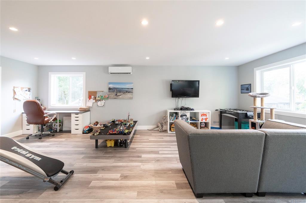 Located in sought-after Greig Estates, this beautiful Brentwood Bay home is perfectly positioned on a quiet cul-de-sac backing onto parkland, offering outstanding privacy and a welcoming family setting. Impeccably updated, the 3 bedroom, 3 bathroom residence features a bright open-concept main level with a well-appointed kitchen, eating area and warm family room with an electric fireplace, ideal for everyday living and entertaining. Separate dining and living rooms add timeless elegance and flexibility. A lovely flex room off the kitchen overlooks the private backyard with mature, manicured gardens. Exceptional 2022 updates include a large family room/playroom, custom mudroom with heated tile floors, additional garage, covered patio and new roof. Beautiful curb appeal and pride of ownership shine throughout. Ideally located near the world-famous Butchart Gardens and the quaint, picturesque village of Brentwood Bay with its charming cafes, local shops, and waterfront.