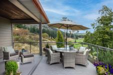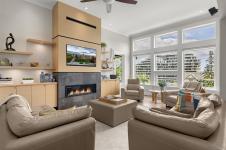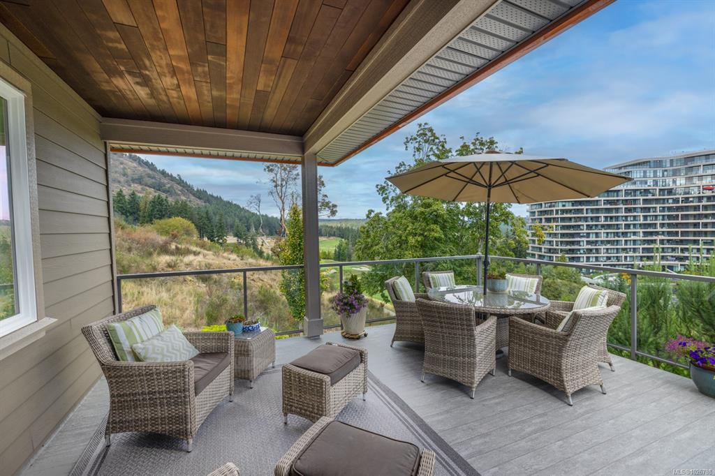 Experience unparalleled craftsmanship in this West Coast contemporary residence on Bear Mountain, ideally positioned at the end of a private cul-de-sac with sweeping views of the Jack Nicklaus–designed 18th fairway & green. Offering 3,381sqft, 3 beds + office & 4 baths, the home is filled with refined finishes: 12’ ceilings, oak flooring, custom millwork, quartz counters, heated tile, & solid fir accents. The gourmet kitchen opens to a light-filled great rm w/gas FP, while a custom wine cellar sets the stage for elegant entertaining. The primary suite impresses w/walk-in & spa-inspired ensuite; a 2nd primary suite, family rm, 2nd kitchen, & guest quarters are found on the lower level. Multiple decks & professionally landscaped gardens frame the stunning golf course backdrop. $150,000 renovation completed in the last couple of years. A $60K golf membership completes this rare offering designed for those seeking luxury & lifestyle.