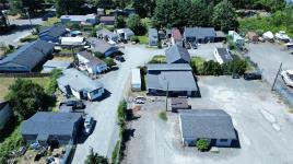 Investment Opportunity! Income Producing Property with Development Potential. Ideally situated just one block from the Campbell River, this 1.38-acre property presents an exceptional opportunity for investors, developers, and owner-operators. The offering consists of two separately titled legal lots with direct highway access and is currently improved as a mobile home park featuring eight mobile homes and three full duplexes, generating immediate and stable rental income. The fully gated commercial component includes a 720 sq ft concrete office building, a 1,600 sq ft three-bay shop with one over-height bay, and a 30' x 8' SeaCan for storage or workspace. Ample yard space provides flexibility for operations, expansion, or redevelopment. This versatile asset offers multiple income streams alongside strong future upside through expansion or redevelopment aligned with its highest and best use within a growing Vancouver Island market. A rare opportunity combining scale, income, and vision.
