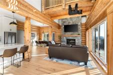 Custom 5BD, 4BA log chalet in Beaufort Heights on Mount Washington! This Norse-built, Karly Parker designed masterpiece is a rustic, warm & timeless with & unique look to enjoy for years. The handcrafted logs provide one-of-a-kind character you won't see in typical chalets around. A ski family-friendly lower entry with ample storage, covered deck (hot tub prepped), games room with sauna, crawl, BD & full BA. There is potential to add a guest suite! The main has a separate entrance, primary BD, BA w/ laundry, a full, bright kitchen with custom cabinetry & open to the dining room, cozy living area & a towering floor to ceiling rock fireplace. Vaulted T&G ceiling with cat-walk, large view windows & balcony access to take in the outstanding mountain range views.