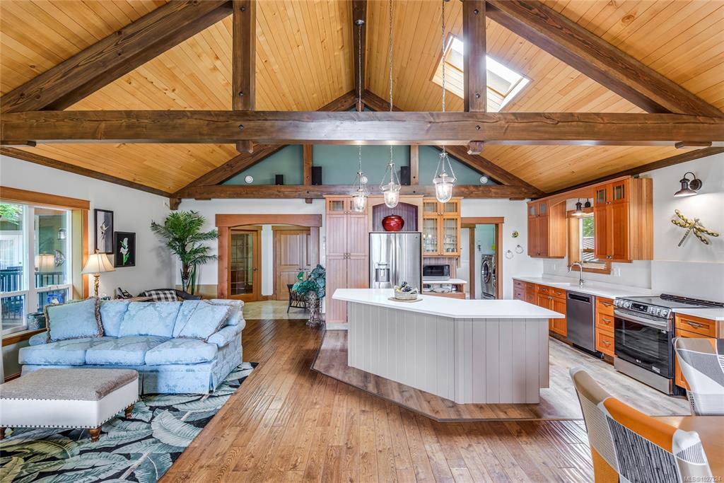 Beautiful 4-bedroom 3.5 bath home across the street from the desirable Saratoga Beach and minutes to Saratoga Golf Course. This grand home is set on nearly an acre with stone accents, big wood beams, open concept living with 3 gas fireplaces, 1 wood burning stove downstairs in the spacious in-law suite. This incredible property also includes a 1200 sq ft shop with bathroom and a nicely done 2 bed 1 bath + den carriage house with brand new septic system separate from the main house and with its own separate access from Henderson Rd. An Air BNB (B&B) cabin with great income. Large covered 7-man Hot Tub, tranquil pond, kids' playground there is something for everyone. With fully serviced RV site for your friends and family to visit. Ideal for families, multi-generational living or investors. Enjoy luxury, space and a peaceful lifestyle at the beach in one of Vancouver Islands best coastal communities. Call to book your appointment today.