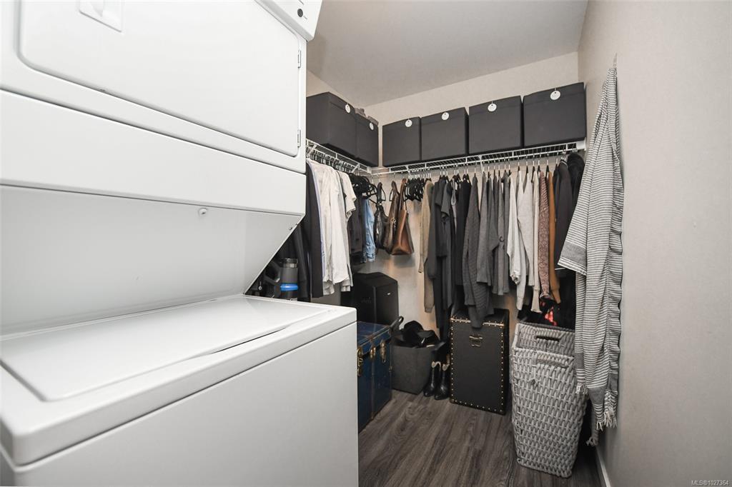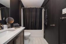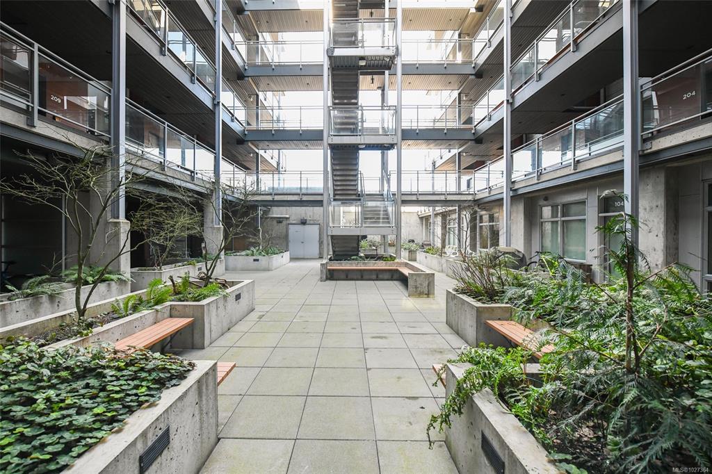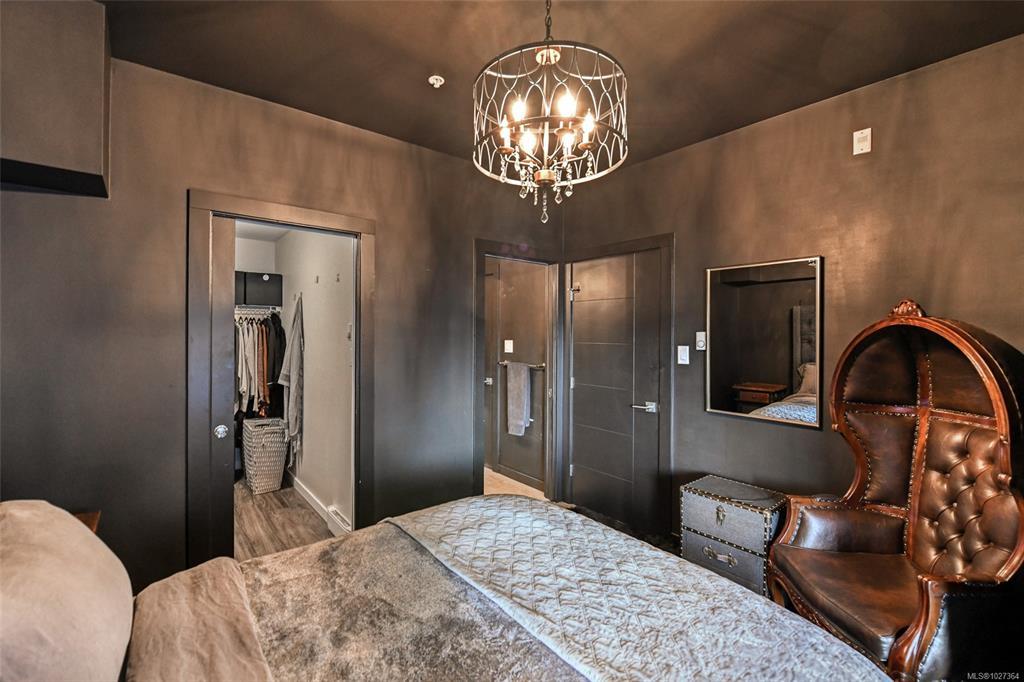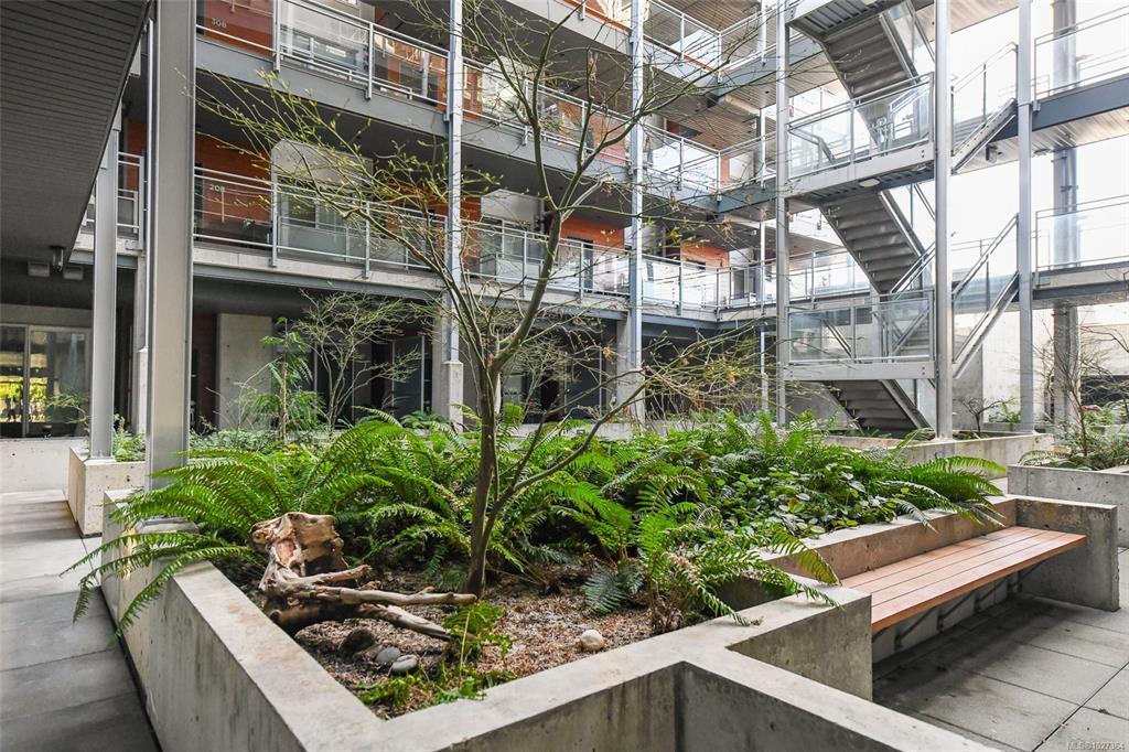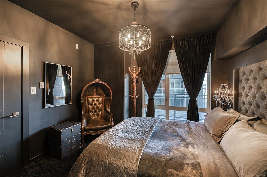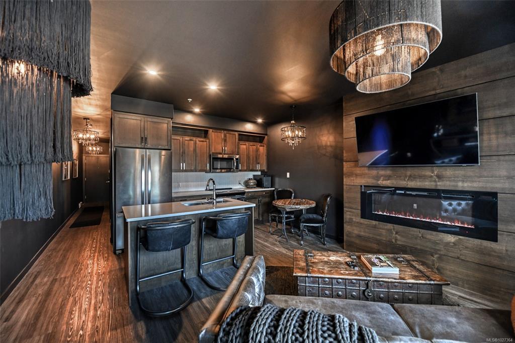 Elevated urban living in the heart of historic Nanaimo. This beautifully refinished 1 bedroom, 1 bath condo with private patio is chic sophistication. Floor-to-ceiling windows showcase views of the Nanaimo Harbour and the Harbourfront Walkway creating a seamless connection to the west coast lifestyle. Inside, every detail has been thoughtfully curated- soft-close cabinetry, quartz countertops and sleek stainless-steel appliances as well as gorgeous designer lighting and a large electric fireplace feature wall that anchors the living space in warmth and style. The open-concept layout feels airy and intimate, perfect for both quiet evenings in and effortless entertaining. An architecturally striking industrial courtyard contrasted by rich, organic landscaping and secure underground parking add everyday convenience, while the unbeatable downtown location places you steps from dining, boutiques, and the vibrant downtown core. An exceptional blend of luxury, location, and lifestyle.