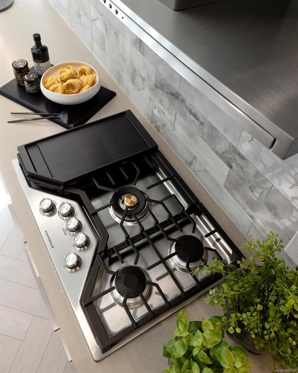 Welcome to Oakwoods by Aragon! This unique 1 bdrm/1 bath plan offers a modest level change, allowing the bedroom to overlook & look through the living area & features 8’ interior doors, 9’6” ceilings, herringbone-patterned engineered oak flooring & ample storage. Chef-inspired kitchen includes a full-size gourmet GE Monogram appliance package with 5-burner gas cooktop, polished tile backsplash and Italian ash cabinetry with floor to ceiling pantry for added storage. Spa-like bathroom has soaker tub & living room offers a brick feature wall with electric fireplace and a geothermal heat pump offers year-round comfort. Oakwoods residents will enjoy exclusive resort-style living with a well-equipped fitness centre, easy access to Janevca Kitchen & Lounge and newly opened Salt and Ivy Spa. Situated just a short walk from the water’s edge in the Saxe Point neighbourhood of Esquimalt and minutes from downtown Victoria, Oakwoods offers a community steeped in tradition. Move in now!