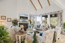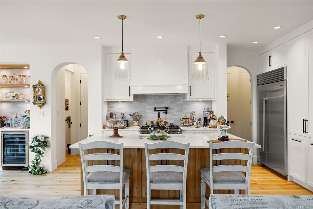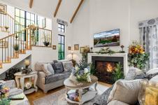 Introducing The Woodhall by KC Custom Designs, a refined modern farmhouse in Bear Mountain’s coveted Pinehurst enclave. Perched at the end of a quiet cul-de-sac, this impeccably maintained 3BD/4BA residence captures sweeping vistas of Goldstream Park, the Olympic Mountains & unforgettable sunsets—available Golf Membership. A vaulted entry opens to wide plank oak floors, a dramatic great room w/gas FP & walls of glass. The chef’s kitchen impresses w/quartz, oversized island, pot filler, Sub-Zero fridge, Wolf gas range & matte black fixtures. Two primary suites (one on main) offer spa ensuites, W/I closets & patio access; upper level features a family rm w/private deck, 3rd BD & full bath. Office, abundant storage, crawl space, 2-bay garage w/EV. Manicured grounds, covered patio & gas fire pit complete this elevated resort lifestyle—steps to Nicklaus golf, red clay tennis, trails, dining & spa.