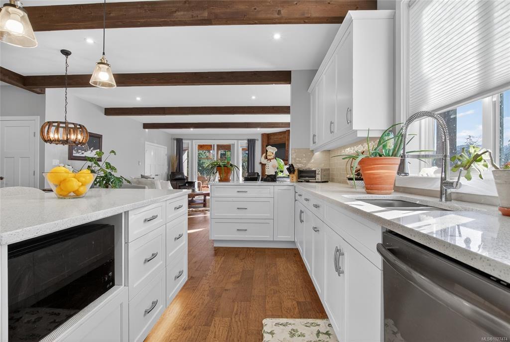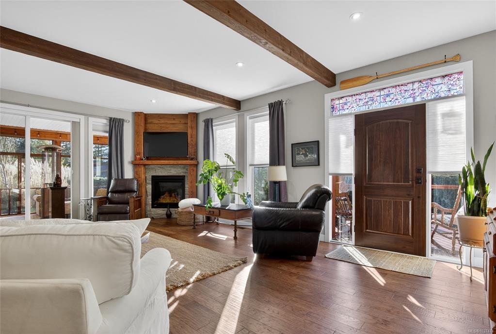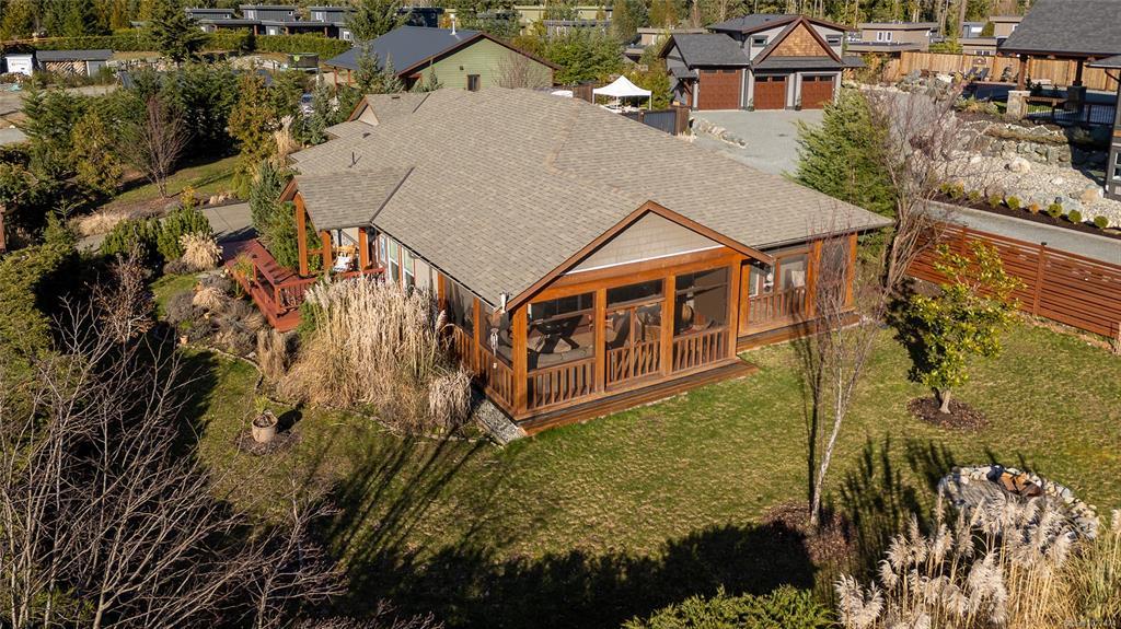Welcome to 7284 Lakefront Drive — a turn-key 3 bed, 2 bath rancher in the peaceful Woodland Shores community of Lake Cowichan. Just 8 years old on a sunny, fully fenced corner lot of nearly half an acre. The south-facing backyard is a private sanctuary — professionally landscaped with mature gardens, full irrigation, and a serene pond with waterfall & river feature. Step onto the 400 sq ft screened cedar porch and soak in lake & mountain views year-round. Inside, wood flooring flows through an open-concept living & dining area with gas fireplace. Kitchen features quartz counters, large island, gas stove & walk-in pantry. Primary suite offers a walk-in closet & heated ensuite floors. Heat pump, crawl space & over-height double garage complete the package. Steps to the lake, marina & children's park, with access to extensive trails for hiking & biking. Schools & amenities under 10 minutes away. Peace, privacy & nature at your doorstep — come see it today!