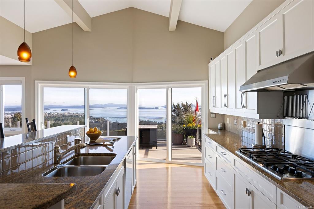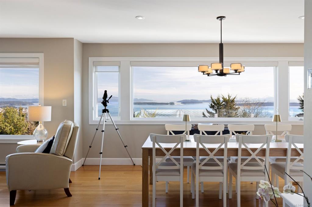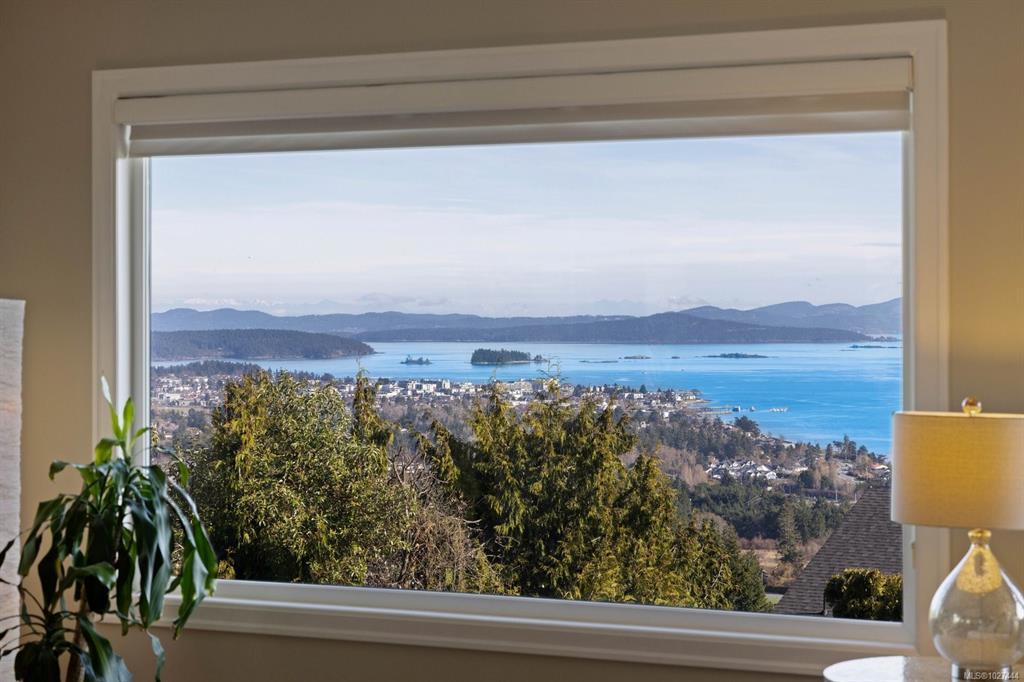 Open House: Sun: 1-3 pm Essence of the West Coast. Perched above the manicured community of Dean Park, this 4,403 sq ft residence captures some of the finest views in Greater Victoria- ocean, islands & Mt. Baker are framed by expansive picture windows. Designed for family living, the thoughtful layout offers a welcoming great room with gas fireplace & dining area open to a crisp white kitchen with vaulted ceiling & patio doors leading to a view deck. The main-level primary suite is a private retreat with generous walk-in closet, convenient laundry & luxurious 5-piece ensuite. A second bedroom & bath complete the level. Downstairs, two additional bedrooms, a full bath & large family room with fireplace provide an ideal space for teens, while a separate in-law suite with its own entrance & deck overlooks the garden. The oversized garage is accessed from a level driveway. Set on a beautifully landscaped, 1/3 acre property.Located near to Panorama Recreation Centre, Sidney & the Airport.