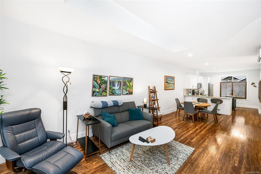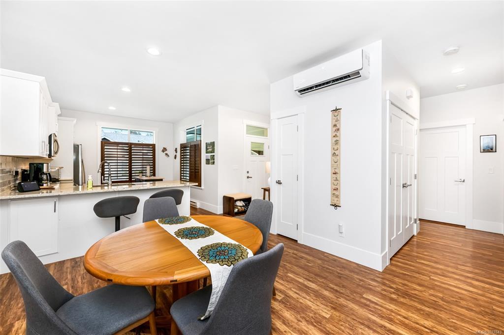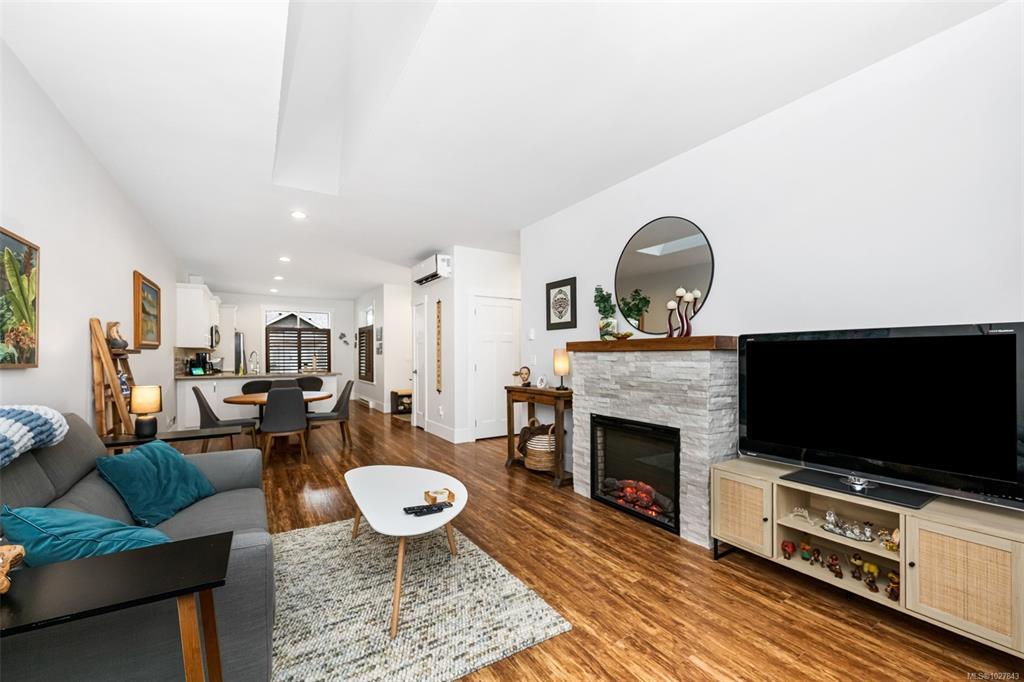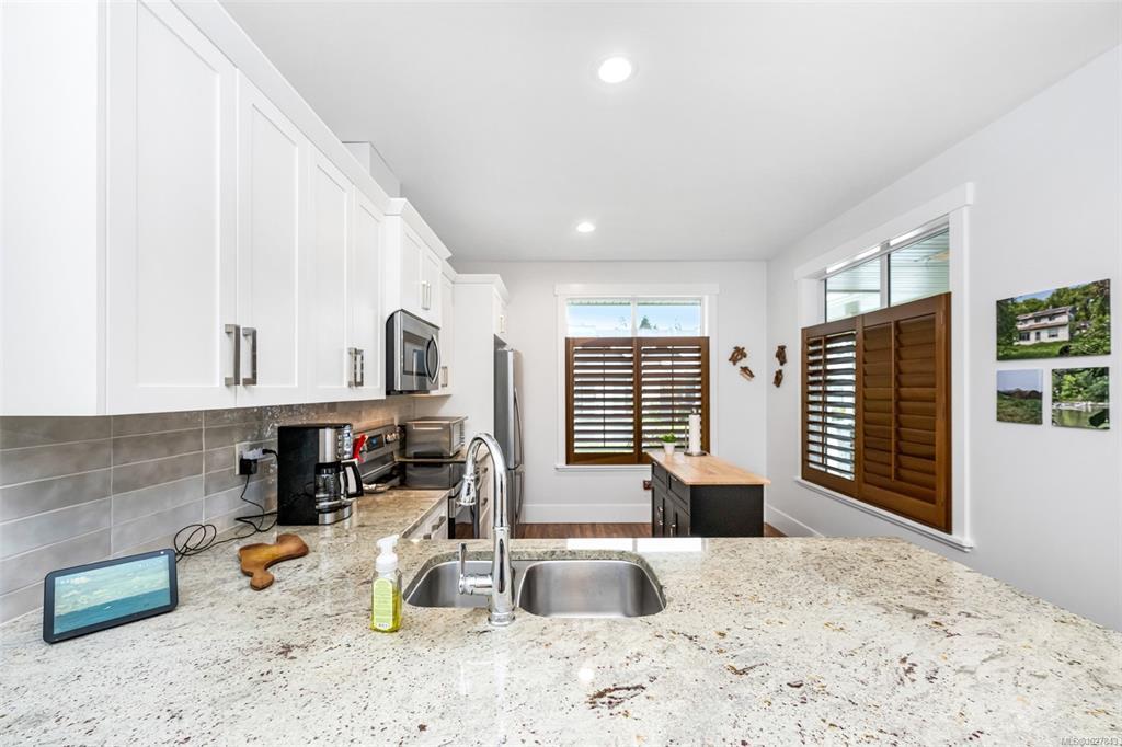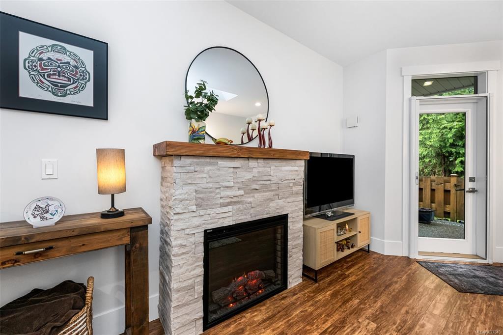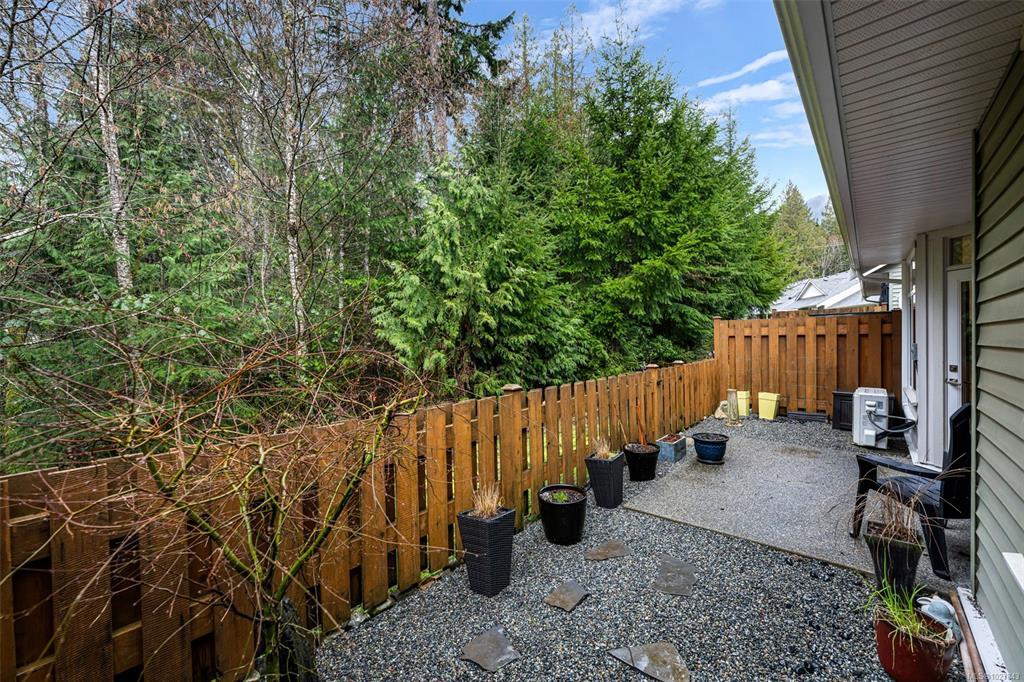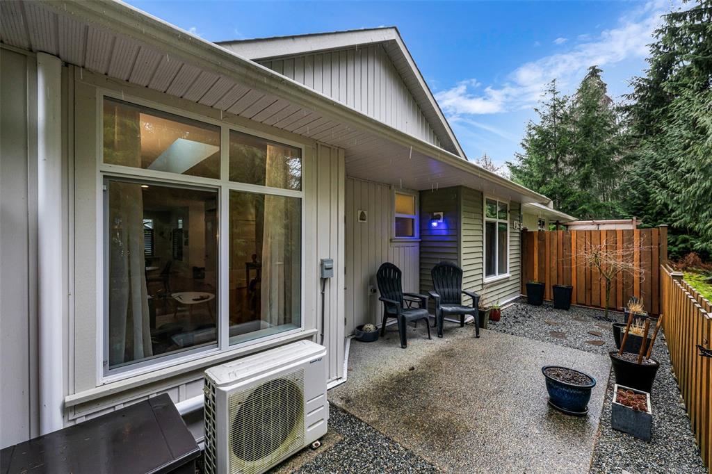 Welcome to this well maintained, spotless 2 bedroom, 2 bathroom patio home in 55+ Brookside Village backing onto a creek/greenspace which ensures your privacy! Featuring an open design with some nice updating, this home has 9' ceilings, a heat pump for year round comfort, & a nice sized carport with storage shed. The kitchen is bright and airy with ample cabinets, new backsplash, eating bar & stone countertops. There is generous living room with an electric fireplace & access to the fenced backyard with private patio overlooking the greenspace. Large primary bedroom has a nice ensuite bathroom (new shower door & backsplashes in both bathrooms) & walk-in closet & the second bedroom & main bathroom are perfect for family & friends. Located at the end of a quiet no through road & close to the amenities of Lake Cowichan, the professionally managed complex allows pets, some rentals, is walkable, & features a clubhouse for gatherings & visitors. Move right in & enjoy all this area offers!