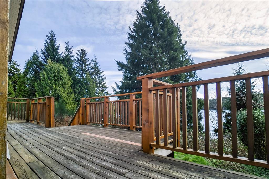 Tucked into the peaceful Millstream neighborhood minutes from the heart of Ucluelet, this charming waterfront rancher offers a true taste of West Coast living. Set on a .40-acre lot overlooking the tranquil inlet, this 3-bed, 1-bath home features 1,172 sq ft of bright living w/ beautiful water views. The sun-filled kitchen has solid wood cabinet doors & a cozy breakfast nook looking out to the inlet. The dining area also enjoys water views—perfect for cozy evenings around the wood stove watching birds & wildlife. Step onto the spacious south-facing deck w/ hot tub, ideal for relaxing after a day exploring the coast. Built in 1960, the home has seen updates including refreshed kitchen, laminate flooring, refinished wood floors in bedrooms, plumbing & electrical upgrades, & new septic (2020). Large front yard w/ ample parking, private backyard deck, & trail to the beach. Previously operated as a successful vacation rental. Duplex zoning adds future potential. Just 8 minutes from town.