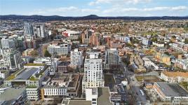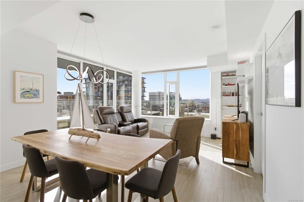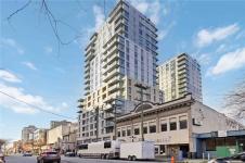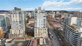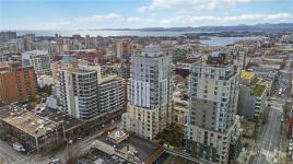 Experience contemporary luxury at Yates on Yates by Chard Developments. This sleek SW facing 2-bed, 2-bath residence blends modern design with timeless elegance. Floor-to-ceiling windows frame bright views & fill the home with natural light, while a 301 sq.ft. balcony offers a sunny space to relax. Automated Hunter Douglas blinds add a refined finishing touch. The spacious gourmet kitchen features premium integrated appliances, an induction cooktop, soft close cabinetry, quartz countertops & a custom wine fridge. Wide plank flooring & a light colour palette create a versatile setting. Climate-controlled heating & cooling keep the home comfortable year-round, complemented by heated ensuite floors. Rooftop amenities include BBQ areas/firepit/pet play zone/community garden & panoramic 360° views. Other highlights: secure bike storage/storage locker/pet wash station. With groceries, restaurants, theatres & transit steps away, this pet & rental friendly home offers vibrant urban living.