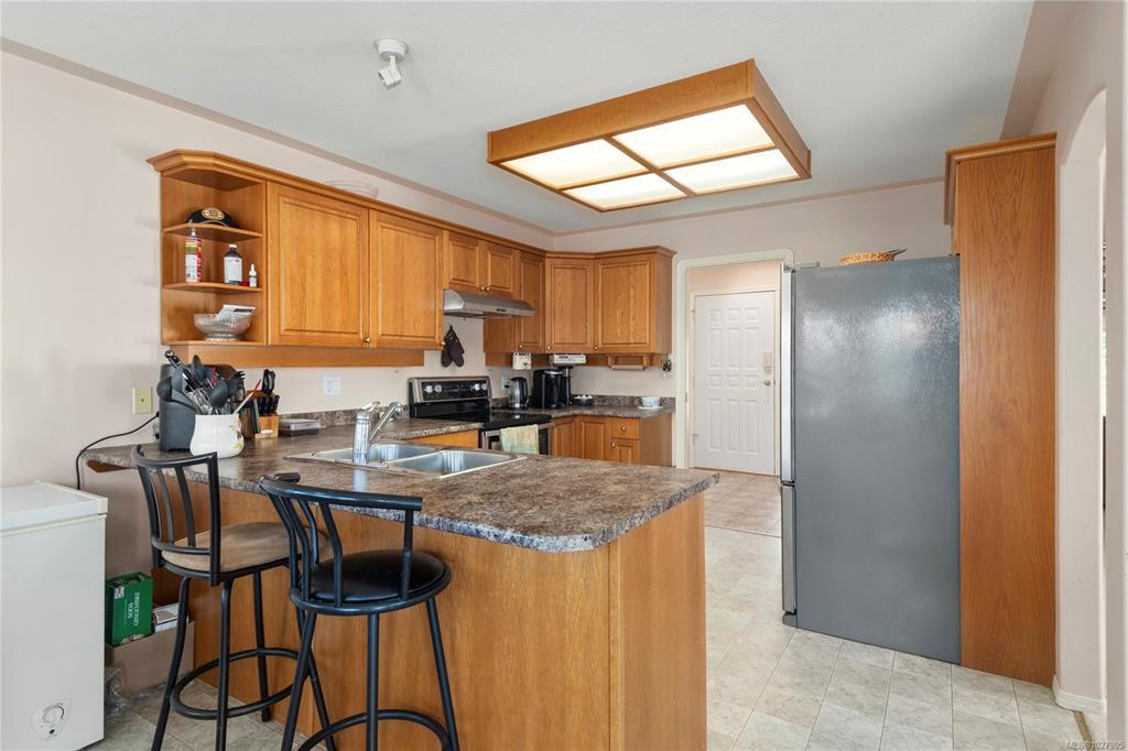 Located in the desirable Georgia Park neighbourhood, this 3 bedroom, 2 bathroom rancher offers a spacious and functional layout close to schools, walking trails, recreation and the Seawalk. The home features a tiled entrance, oak kitchen cabinets with built-ins, and a built-in vacuum system. Enjoy both a formal dining area off the living room and a separate eating nook with family room off the kitchen. Double sliding doors lead to a deck and private backyard with mature landscaping and underground sprinklers. The primary bedroom includes a walk-in closet and a 5-piece ensuite with a relaxing 6-ft soaker tub. Stay comfortable with a gas fireplace, gas furnace (2 years old) and gas hot water tank (2 years old), making this an economical home to run. A standout feature is the 6-ft heated, fully cemented crawl space ideal for storage, hobbies or workshop space.