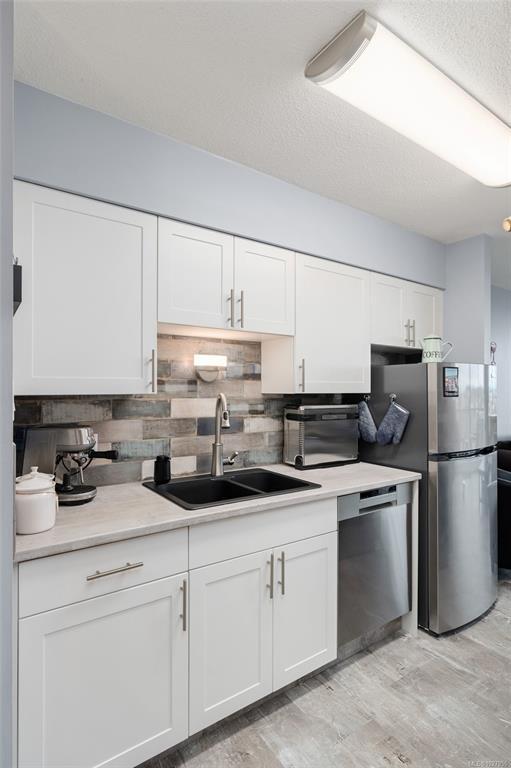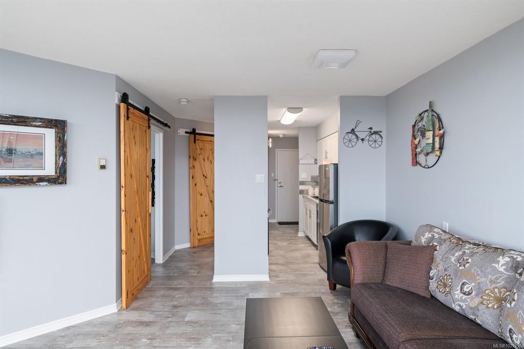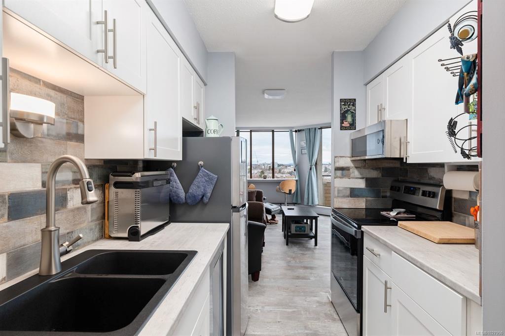 Experience elevated coastal living with postcard-perfect views from this stunning SE-facing 14th-floor condo. From your expansive 17-ft covered deck, soak in sweeping views of the Strait of Juan de Fuca, Beacon Hill Park & the city’s blue heron nesting grounds, with radiant sunrises & graceful ships passing by each day. Inside, thoughtful 2024 updates bring style & comfort together. Wide-plank flooring & a beautifully redesigned kitchen with stainless steel appliances, shaker cabinetry & granite countertops create a fresh inviting feel. Solid wood barn doors, LED lighting throughout & spa-inspired bathroom complete the picture of everyday elegance. Enjoy the convenience of a secured parking, storage locker & access to bike/kayak storage. The building offers a vibrant lifestyle with fitness room, pool, party room, library, guest suites, EV chargers &more. Steps to Beacon Hill Park, Dallas Road & downtown, this home blends coastal charm, modern ease & an unbeatable walkable location.